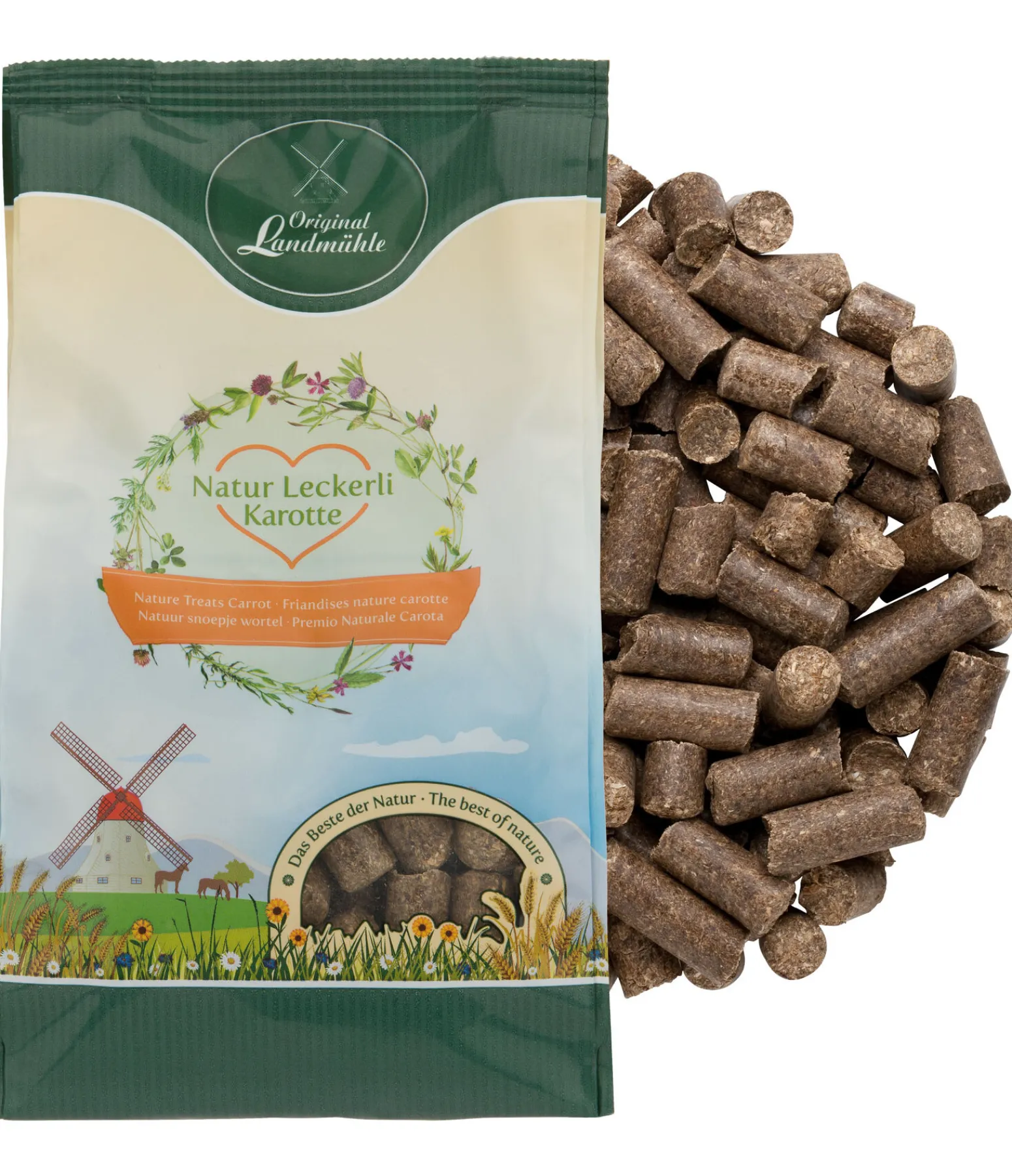 Composition : Fibres de tournesol, farine de luzerne, marc de pomme, 10 % de carottes (séchées), huile de soja.