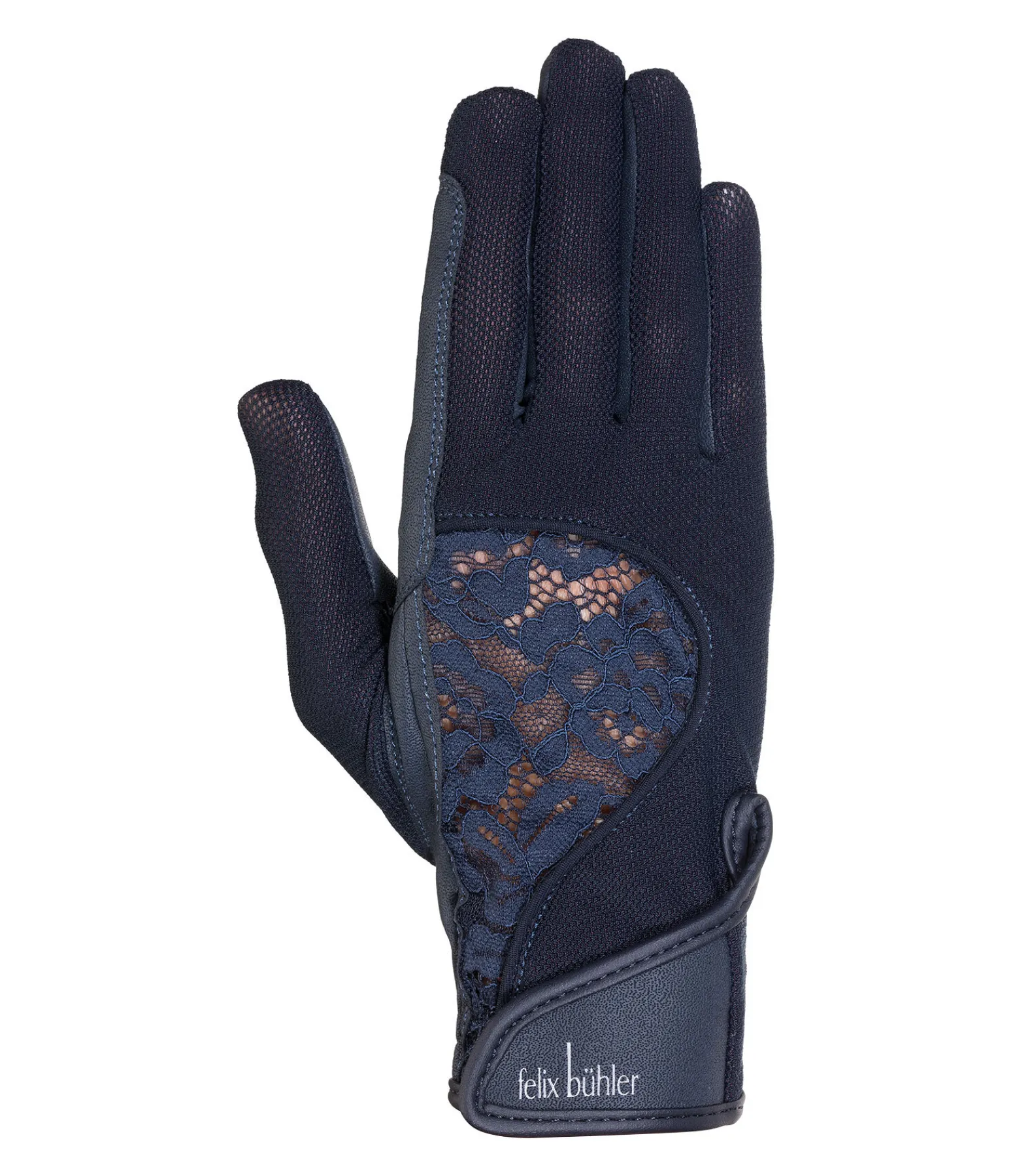 Gants d’équitation fins avec élégant élément en dentelle sur le dos de la main. Paume antidérapante avec renfort aux passages de rênes. Mesh respirant sur le dos de la main. Poignets élastiqués avec patte auto-agrippante. Dessus 100 % nylon, paume 60 % polyester, 40 % polyuréthane.