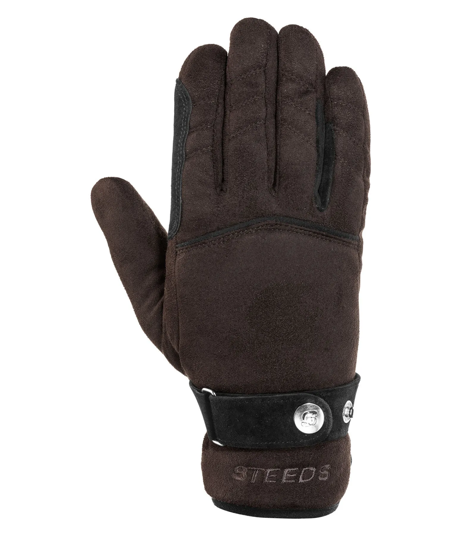 Gants chauds et douillets en polaire. Avec renforts intégrés aux passages de rênes et finition bouton-pression au poignet.
