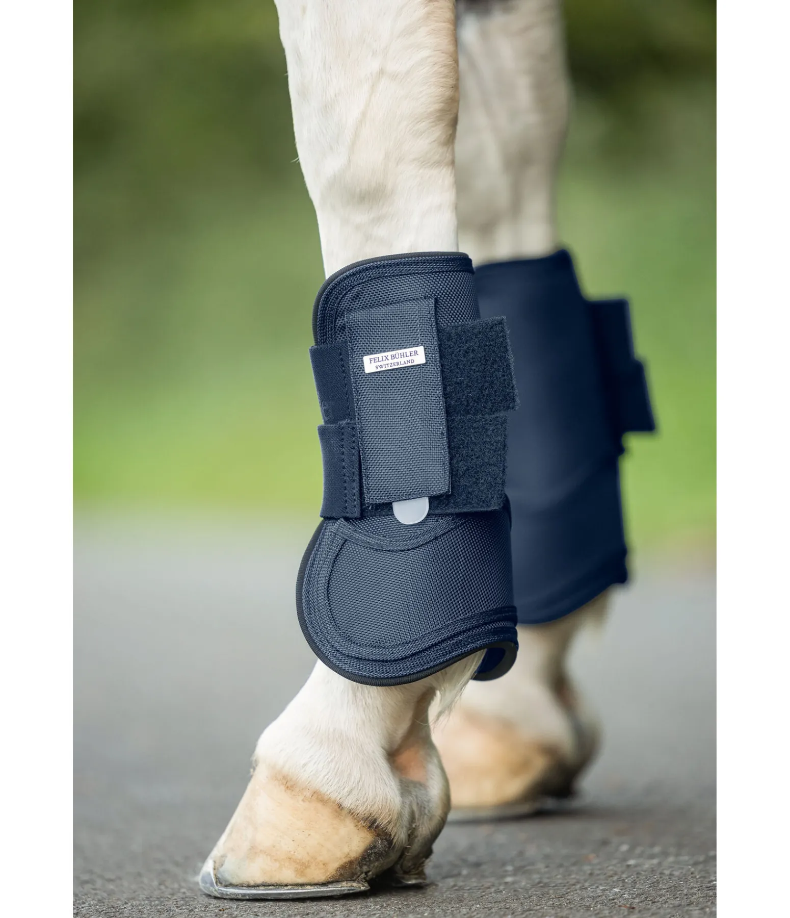 Guêtres de travail ultra-légères pour les antérieurs. Doublure intérieure en caoutchouc chloroprène souple absorbant les chocs pour une protection optimale contre les impacts. Revêtement anti-salissures en matière résistante 600 deniers. Forme anatomique sans coque rigide. Double patte auto-agrippante avec empiècements élastiques pour un ajustement parfait. Élégante plaque logo métallique Felix Bühler. Matière : doublure 100 % caoutchouc chloroprène, revêtement 100 % polyester. Vendues par paire.