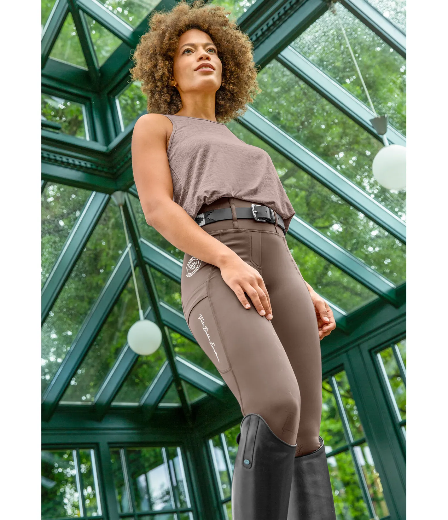 Legging d’équitation confortable à fond intégral grip en silicone avec motifs de mors. Matière respirante de grande qualité, extensible dans 4 directions. Séchage rapide. Soutien parfait et coupe ajustée. Ceinture extra large avec passants. 1 poche arrière zippée et 2 poches latérales pour téléphone portable. Aucune couture au niveau des genoux. Bas de jambe extensible. Imprimés Felix Bühler pailletés. 78 % polyester, 22 % élasthanne.