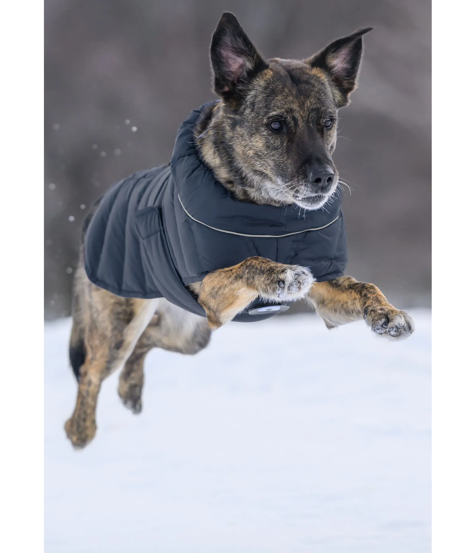 Veste matelassée coupe-vent et sportswear avec coutures invisibles. LED sur le poitrail et le dos fixées à l’intérieur d’une poche zippée, pouvant facilement être retirées avant le lavage du manteau. Le rechargement des LED se fait via un port USB. La fermeture par patte auto-agrippante de chaque côté permet un enfilage rapide de la veste. Le garnissage chaud de 300 g est optimal pour les journées d’hiver particulièrement froides. La veste dispose d’une doublure lisse respectueuse du poil. Il est possible de combiner cette veste avec une doublure en polaire (par ex. art. 230 949). Passage pour fixer la laisse au collier ou au harnais. Matière extérieure 100 % nylon, rembourrage 100 % polyester.