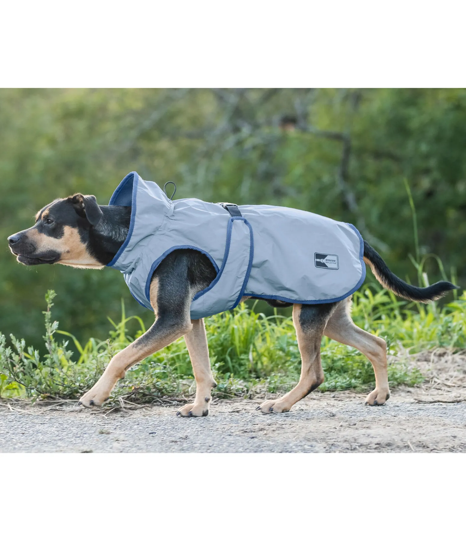 Manteau pour chien protecteur et étanche (colonne d’eau 3.000 mm, respirabilité 3.000 g/m2/24h, coutures thermosoudées) avec doublure polaire chaude et extérieur complet en matière réfléchissante pour une visibilité accrue dans l’obscurité. Couvre-cou et sangle ventrale réglable. Passage de harnais et de collier et courroies de cuisses élastiquées incluses. 100 % polyester.