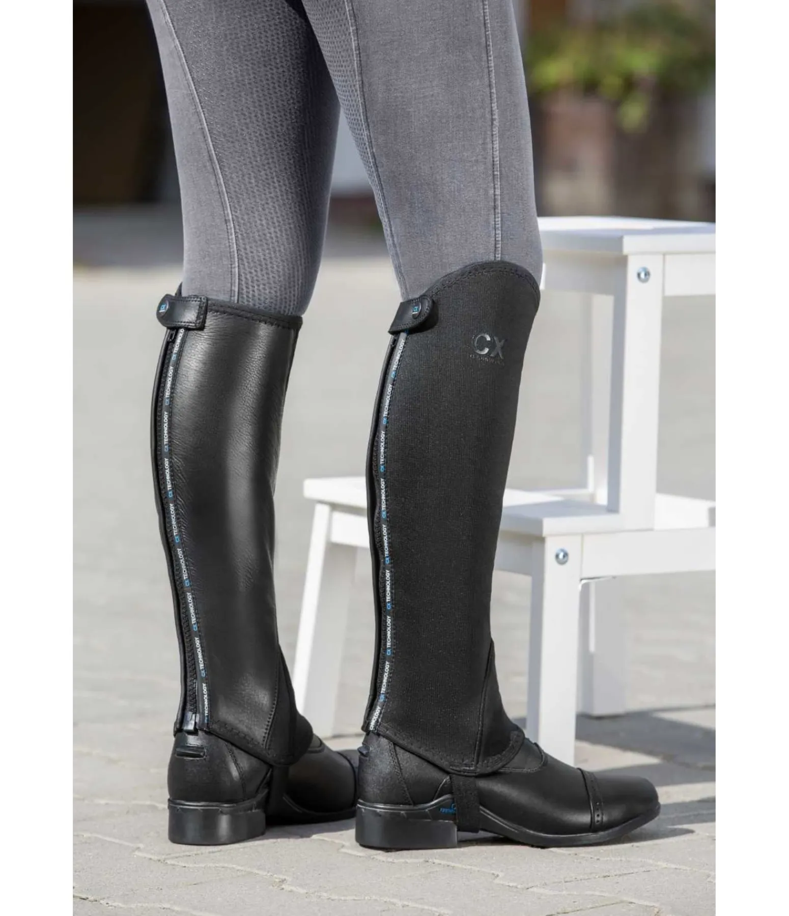 Mini-chaps très confortables avec effet compressif. S’adaptent parfaitement à la forme du mollet et favorisent la circulation sanguine. Face interne en cuir de vachette pleine fleur pour un bon contact avec la selle. Fermeture à glissière YKK robuste à l’arrière. Passepoils CX Technology.