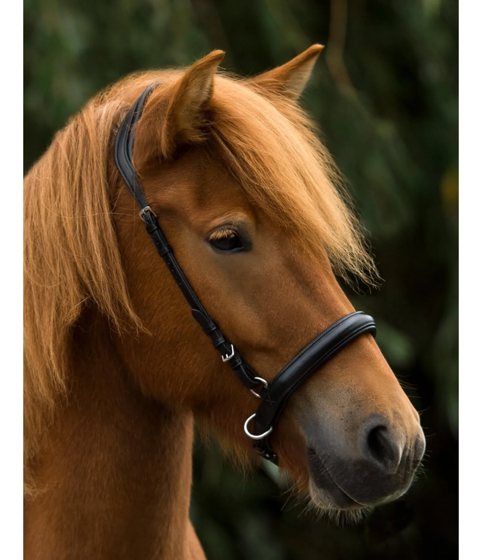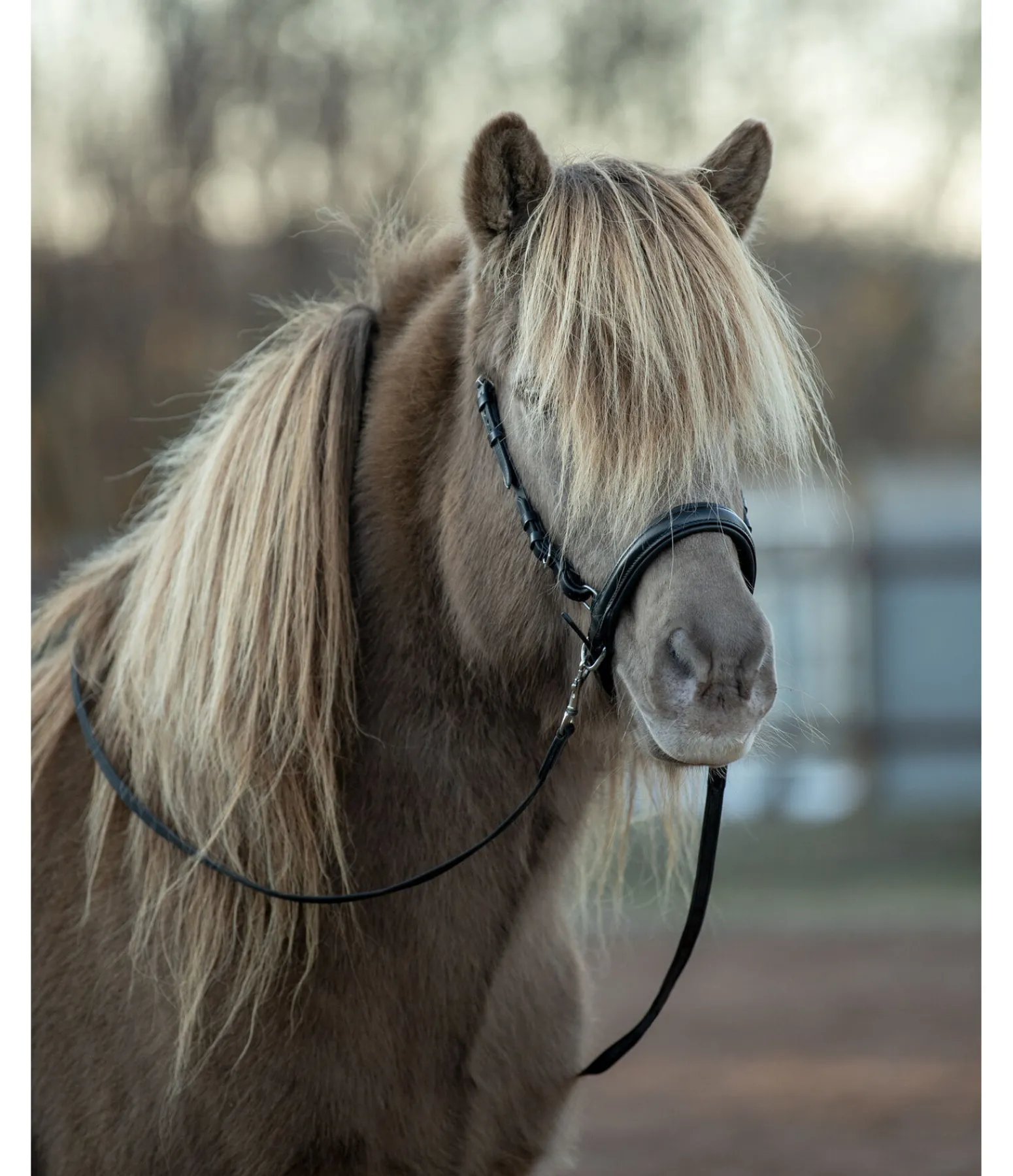 Muserolle de sidepull au rembourrage moelleux, idéale pour une monte douce sans embouchure. Une âme souple à l’intérieur empêche la muserolle de glisser.