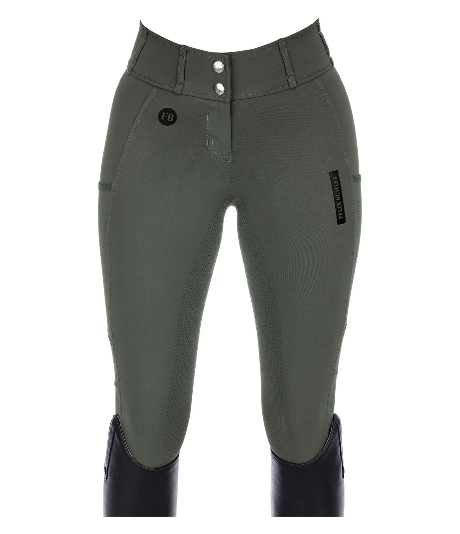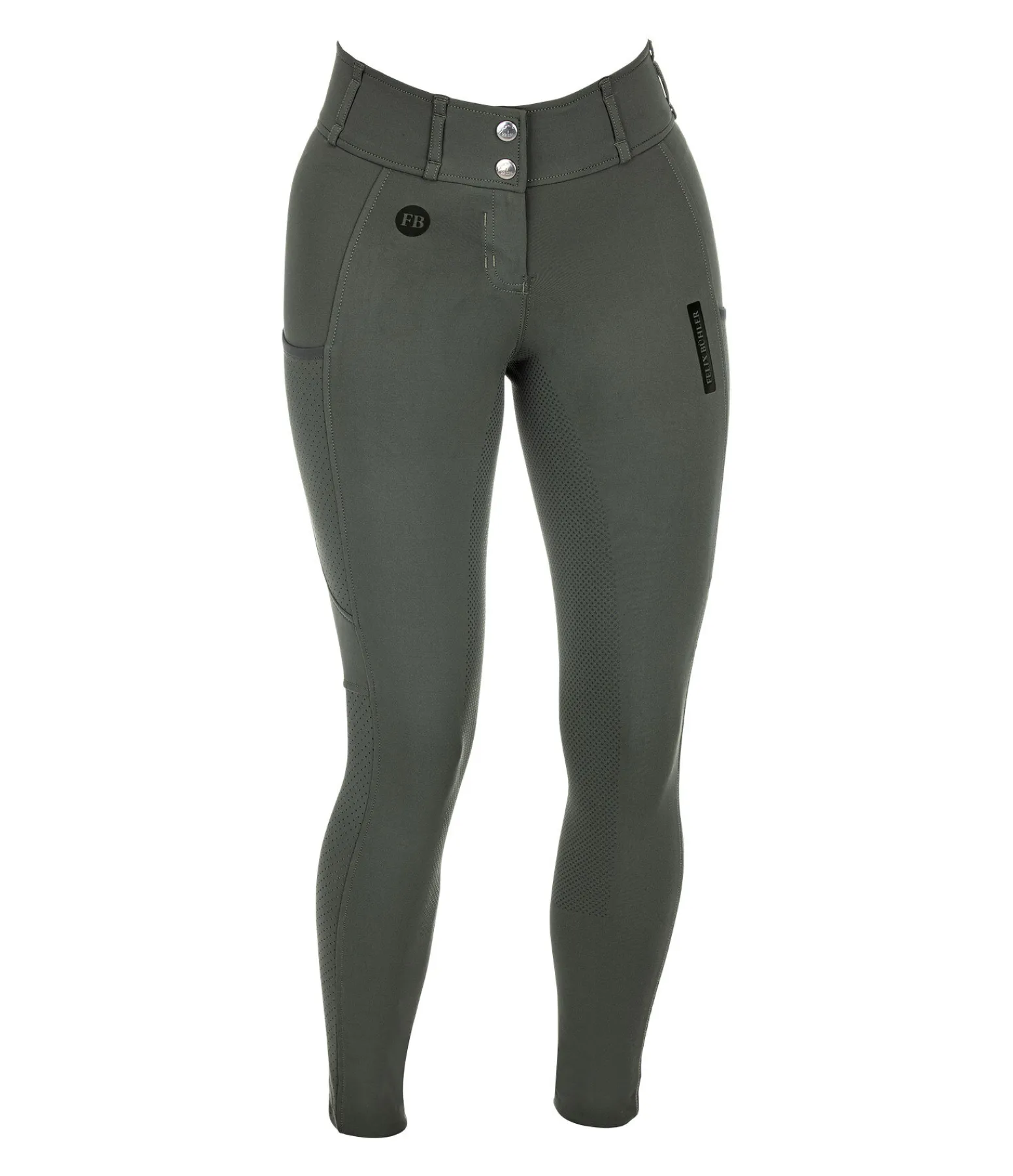 Pantalon d’équitation super confortable et léger à fond intégral grip en silicone. Stretch extensible dans 4 directions pour un effet sculptant garanti. Matière respirante à séchage rapide. Tissu très aéré grâce à la découpe laser sur les jambes. Large ceinture avec passants et deux boutons. Une poche pour téléphone portable sur chaque jambe. Deux fausses poches arrière. Aucune couture sur les genoux. Badges Felix Bühler. 78 % polyester, 22 % élasthanne.