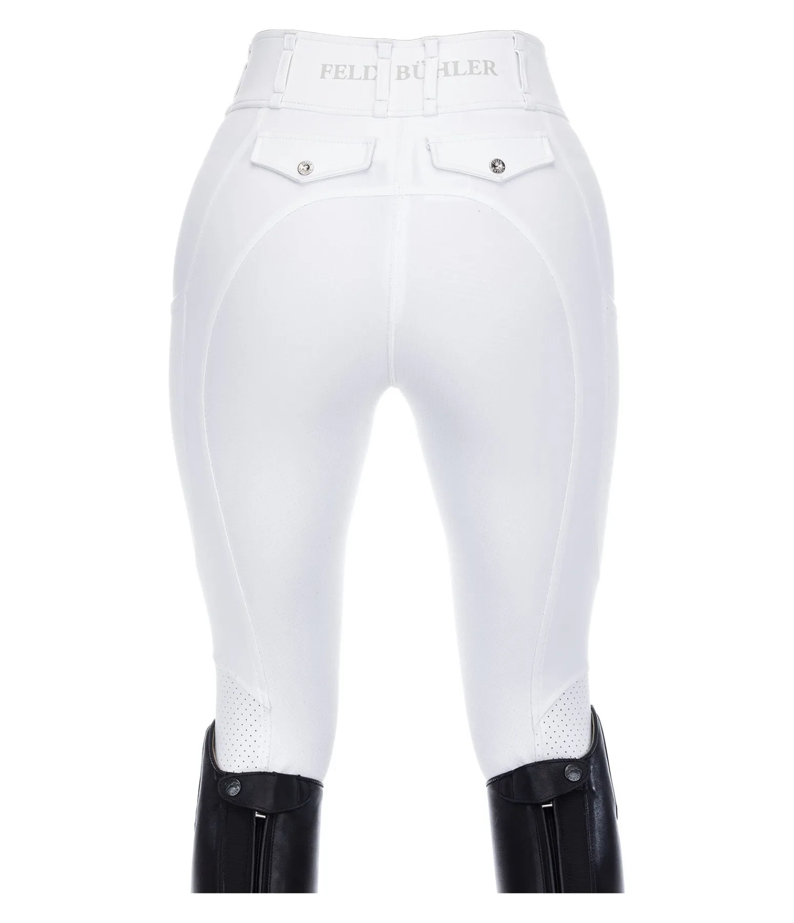 Pantalon d’équitation super confortable et léger à fond intégral grip en silicone. Stretch extensible dans 4 directions pour un effet sculptant garanti. Matière respirante à séchage rapide. Tissu très aéré grâce à la découpe laser sur les jambes. Large ceinture avec passants et deux boutons. Une poche pour téléphone portable sur chaque jambe. Deux fausses poches arrière. Aucune couture sur les genoux. Badges Felix Bühler. 78 % polyester, 22 % élasthanne.