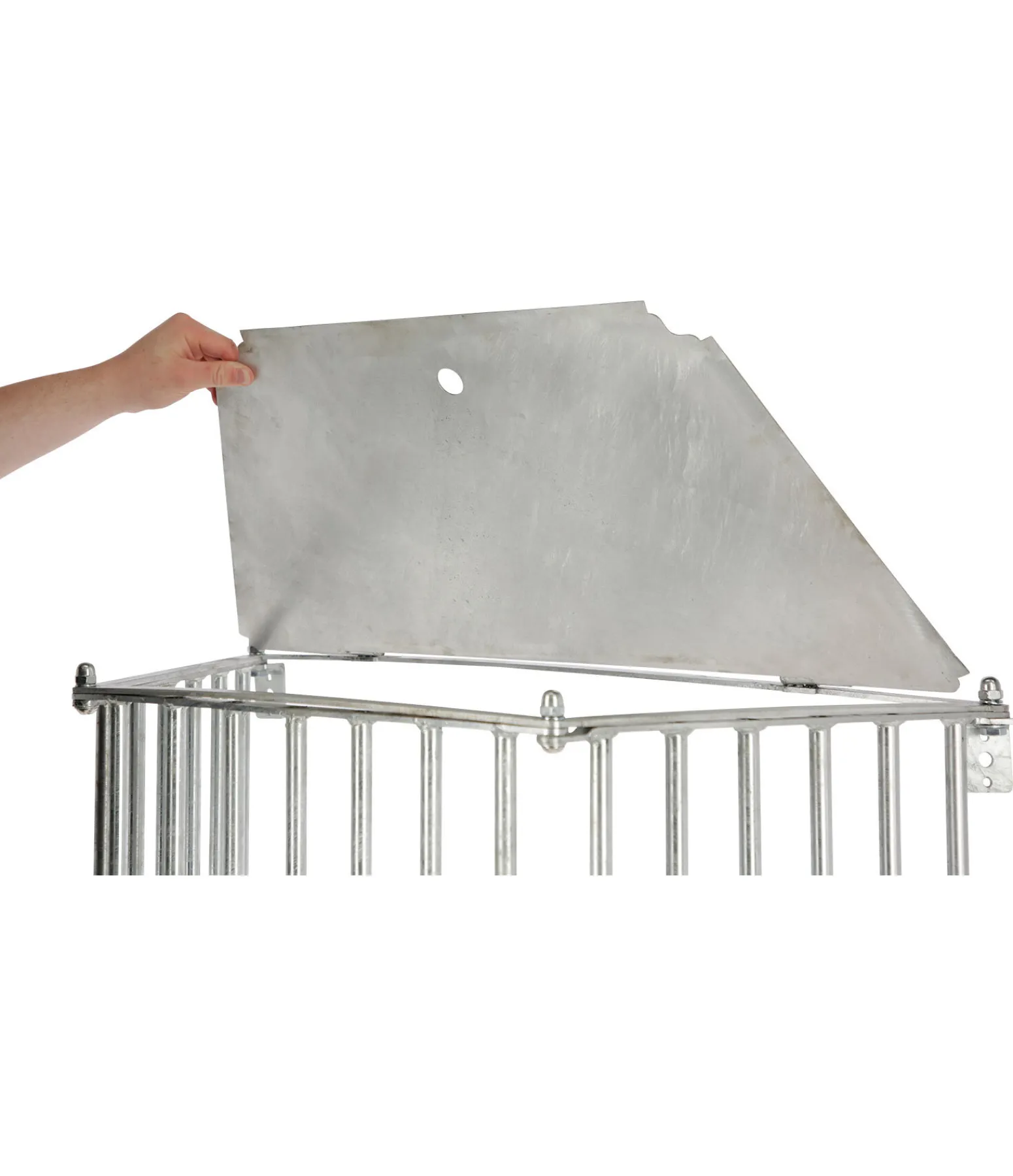 Râtelier mural à foin permettant au cheval de s’alimenter lentement, conformément aux besoins de son espèce. L’espacement de 5 cm entre les barreaux favorise une ingestion lente et améliore le bien-être des animaux. Le râtelier peut contenir jusqu’à 14 kg de foin, selon la structure et le compactage du foin. Le couvercle rabattable permet un remplissage facile et rapide. La plaque de fond est inclinée afin que les restes de foin glissent vers la grille. Les barreaux de la grille se prolongent jusqu’au sol ce qui protège le râtelier contre les coups de pied. Livraison en kit et montage facile. Fixation au mur incluse. Hauteur 120 cm. Ne peut être vendu qu’avec la partie 2 référence 4508832 ! Disponible uniquement en MEGA STORES !
