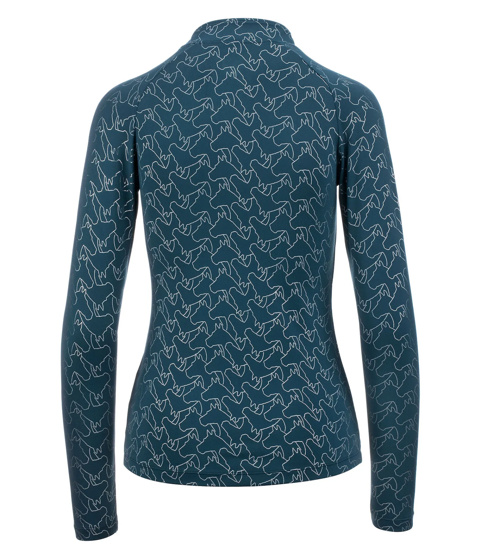T-shirt technique à manches longues avec imprimé métallisé all-over. Manches raglan. Col montant zippé avec protège-menton. Matière respirante. Séchage rapide. 88 % polyester, 12 % élasthanne.