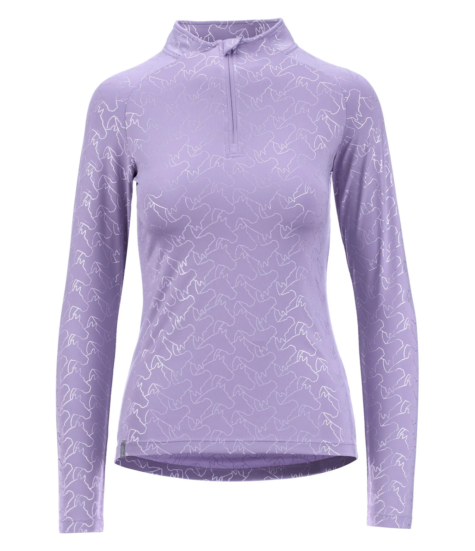 T-shirt technique à manches longues avec imprimé métallisé all-over. Manches raglan. Col montant zippé avec protège-menton. Matière respirante. Séchage rapide. 88 % polyester, 12 % élasthanne.