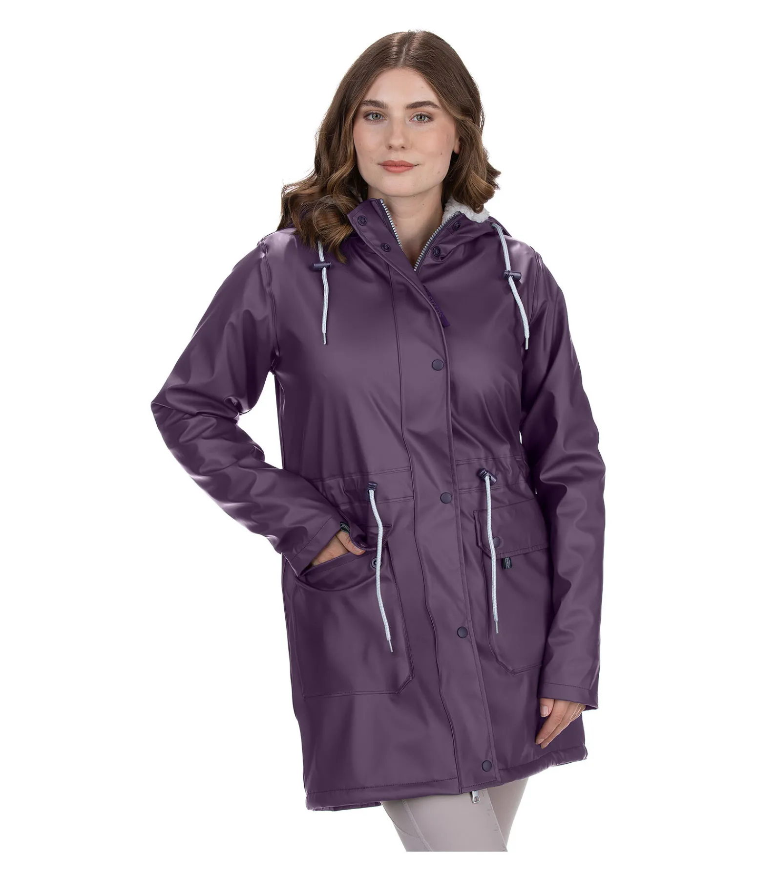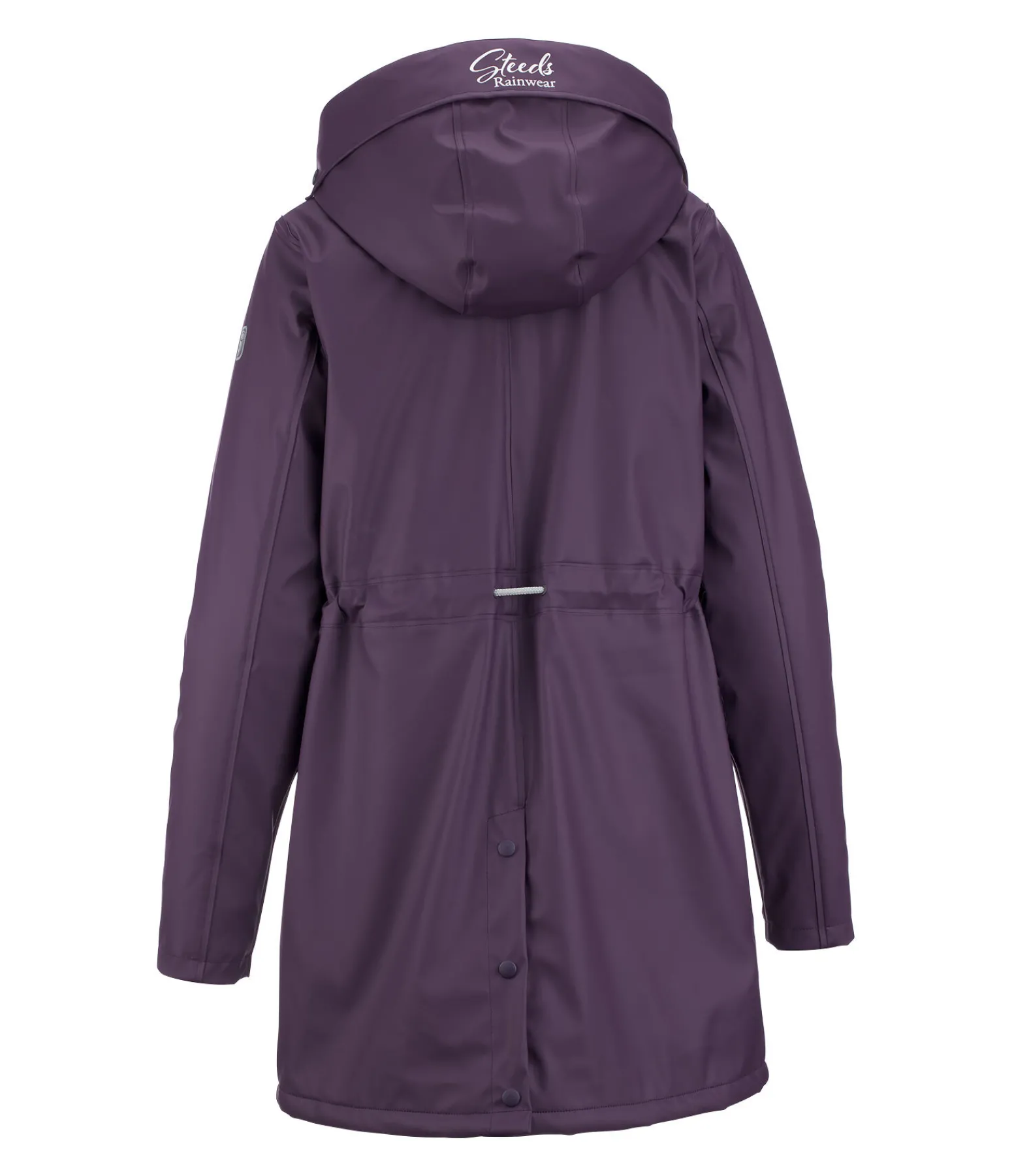 Veste d’équitation de pluie douce et chaude avec doublure intégrale en polaire Teddy. Large capuche réglable en cas de forte pluie. Imperméable et coupe-vent. Fermeture à glissière double sens dissimulée. 2 poches latérales à rabat avec boutons-pression. Taille ajustable par cordon de serrage. 1 fente cavalière avec boutons-pression à l’arrière. Imprimé STEEDS sur la manche et la capuche. 100 % polyuréthane, doublure en polaire Teddy 100 % polyester.