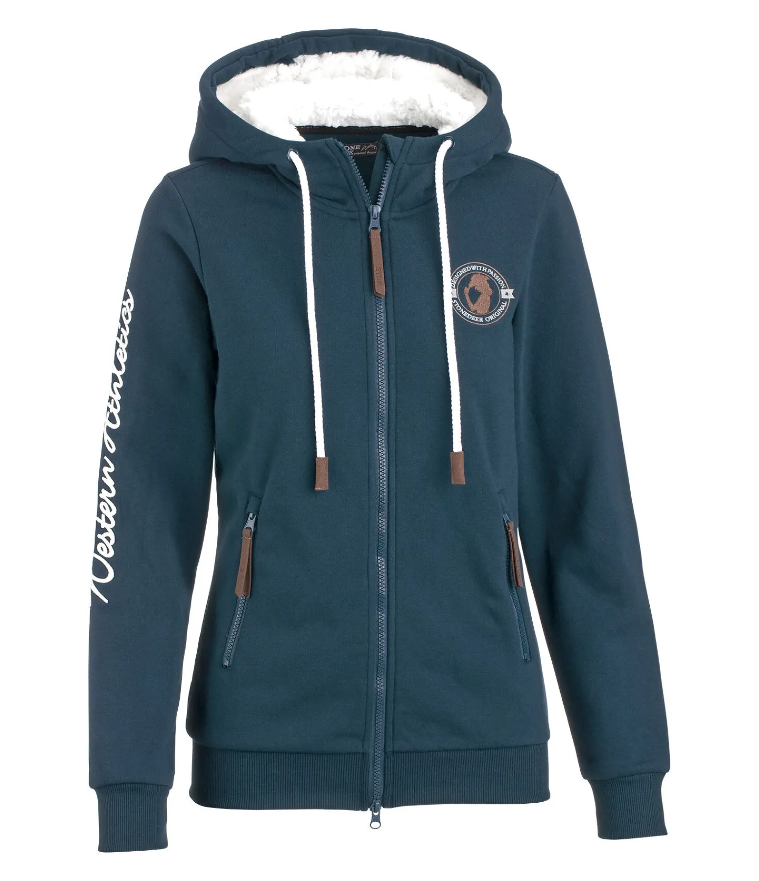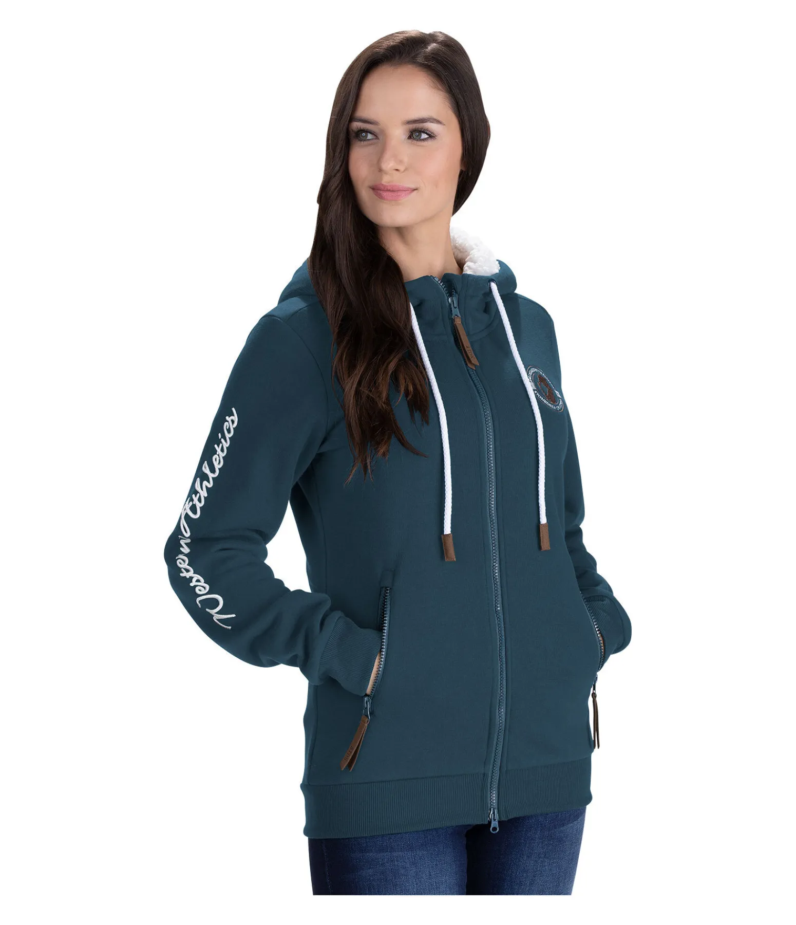 Veste sweat à capuche confortable et légèrement doublée avec cordon de serrage. Poignets et bas de veste en matière côtelée. 2 poches avant zippées. Fermeture à glissière double sens. Superbe broderie sur le bras. 100 % polyester.