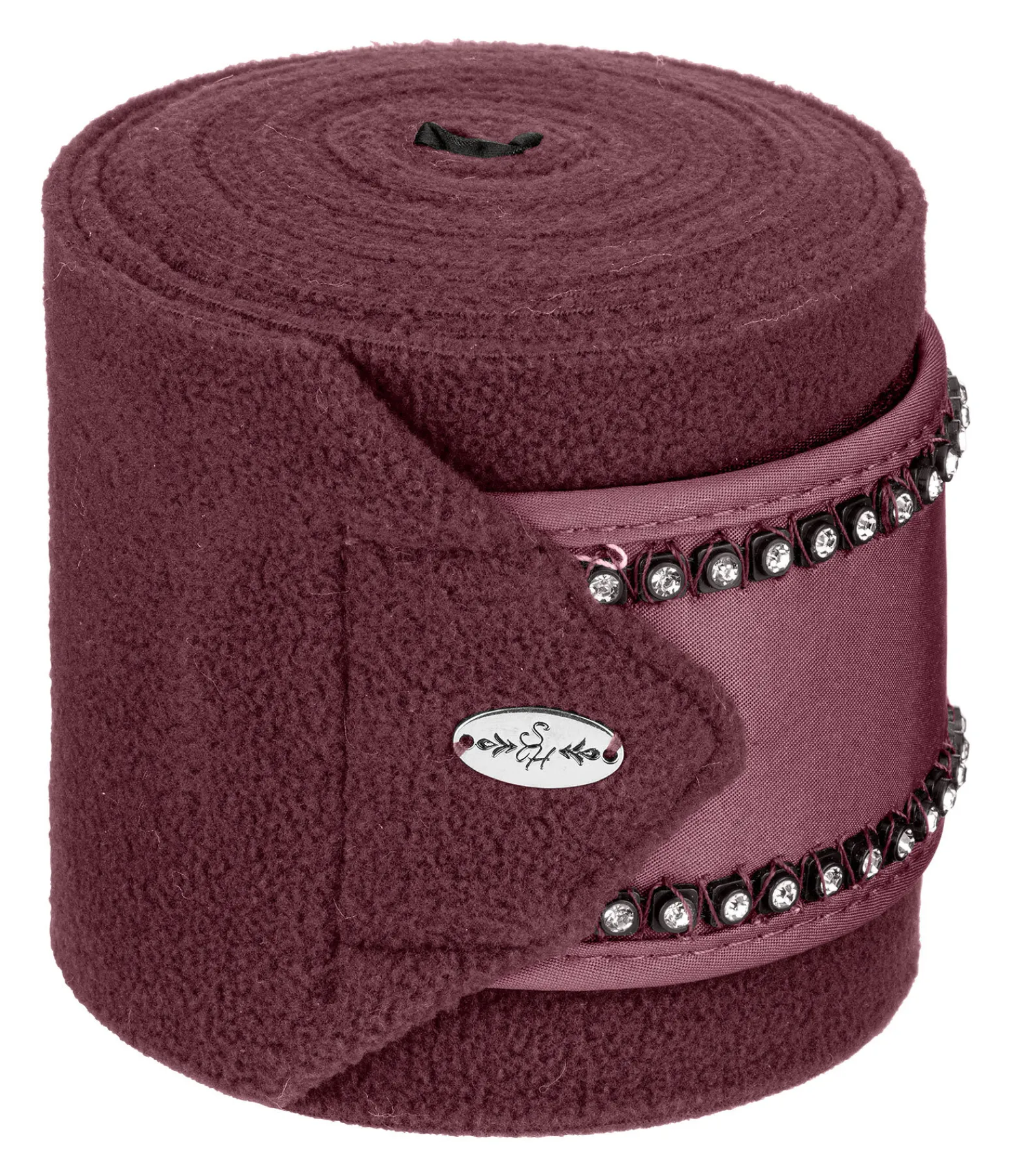 Bandes de polo en polaire. Passepoil avec strass sur la fermeture des bandes. Patte auto-agrippante pour un maintien sûr. 100 % polyester. F (cheval) : 300 x 10 cm, P (poney) : 200 x 8 cm. Vendues par lot de 4.