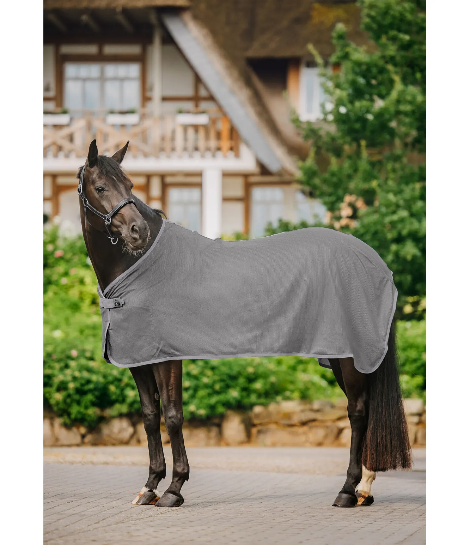 La chemise anti-mouches peut aussi être élégante ! Couverture simple avec fermeture de poitrail simple dissimulée à crochet en T. Idéale pour être utilisée en compétition, au quotidien à l’écurie comme chemise séchante, après l’entraînement, pour le broutage, les promenades ou chez le maréchal-ferrant. Filet en maille fine avec fil intégré scintillant au soleil. Doublure lisse protégeant la robe et les crins au niveau des épaules. Cordon de queue.100 % polyester.