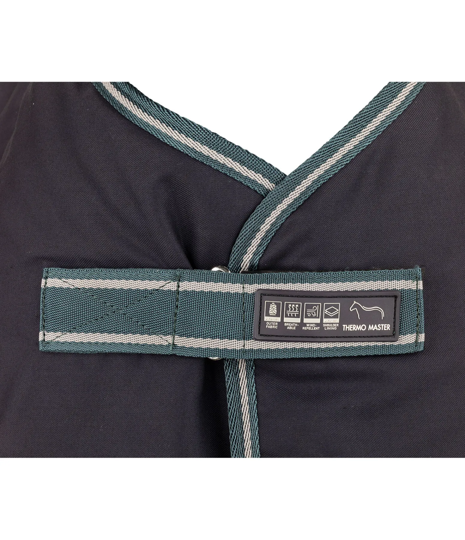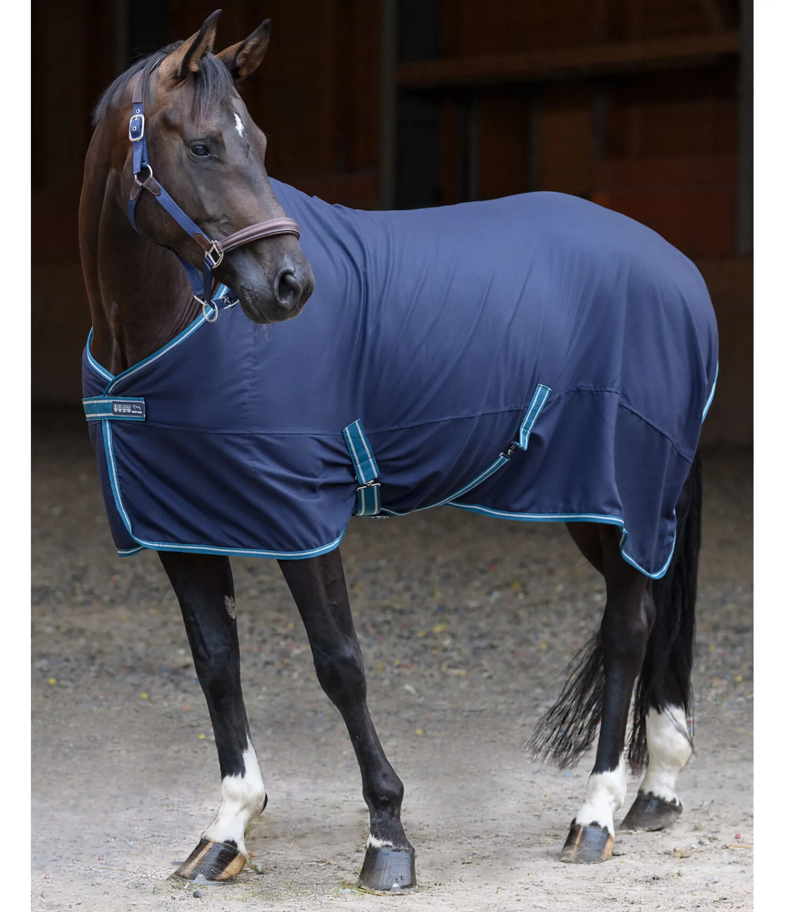 Chemise d’écurie coupe-vent, légère et très respirante pour les fraîches nuits et journées de mi-saison (300 deniers). Doublure lisse protégeant la robe au niveau du poitrail et des épaules. Fermeture de poitrail avec crochet en T, sursangles croisées et courroie de queue réglable. 100 % polyester.