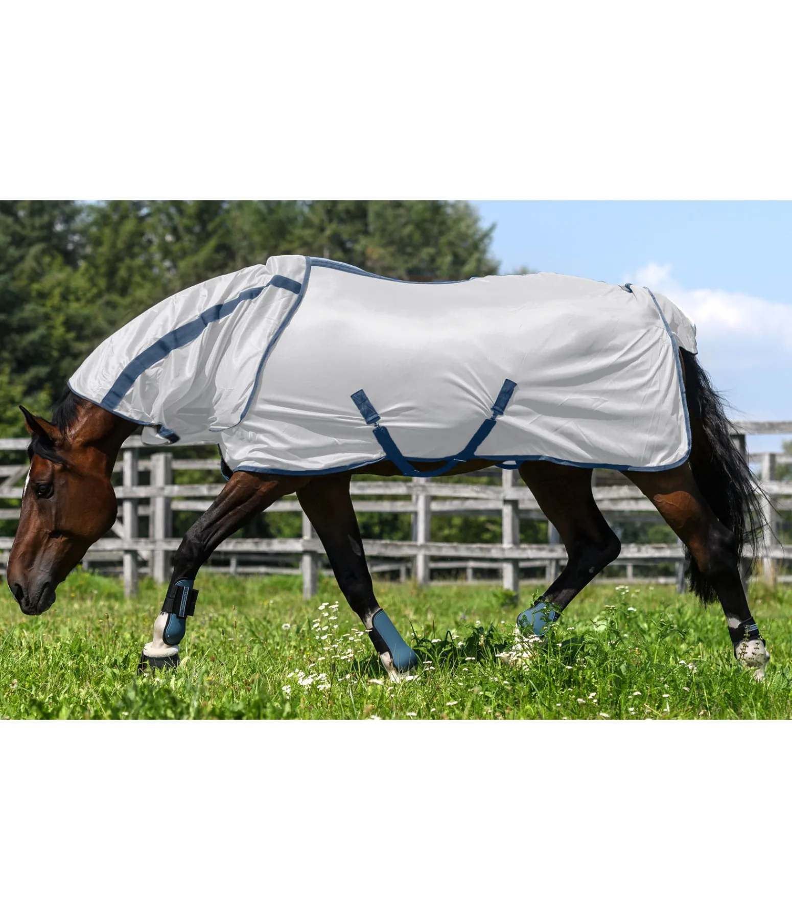 Couvre-cou de protection contre les insectes adapté à la chemise anti-mouches Zoe 422 412. Se fixe à la chemise grâce à 4 anneaux plats en métal qui coincident avec les pattes auto-agrippantes présentes sur la chemise anti-mouches. Doublure satinée au niveau de la crinière, pour éviter la casse de crins et maintenir la robe brillante. Les pattes auto-agrippantes permettent un ajustement optimal et une mise en place facile et rapide. 100 % polyester. Taille XS (pour les couvertures de 85 à 105 cm), taille S (pour les couvertures de 115 à 125 cm), taille M (pour les couvertures de 135 à 145 cm), taille L (pour les couvertures de 155 cm).