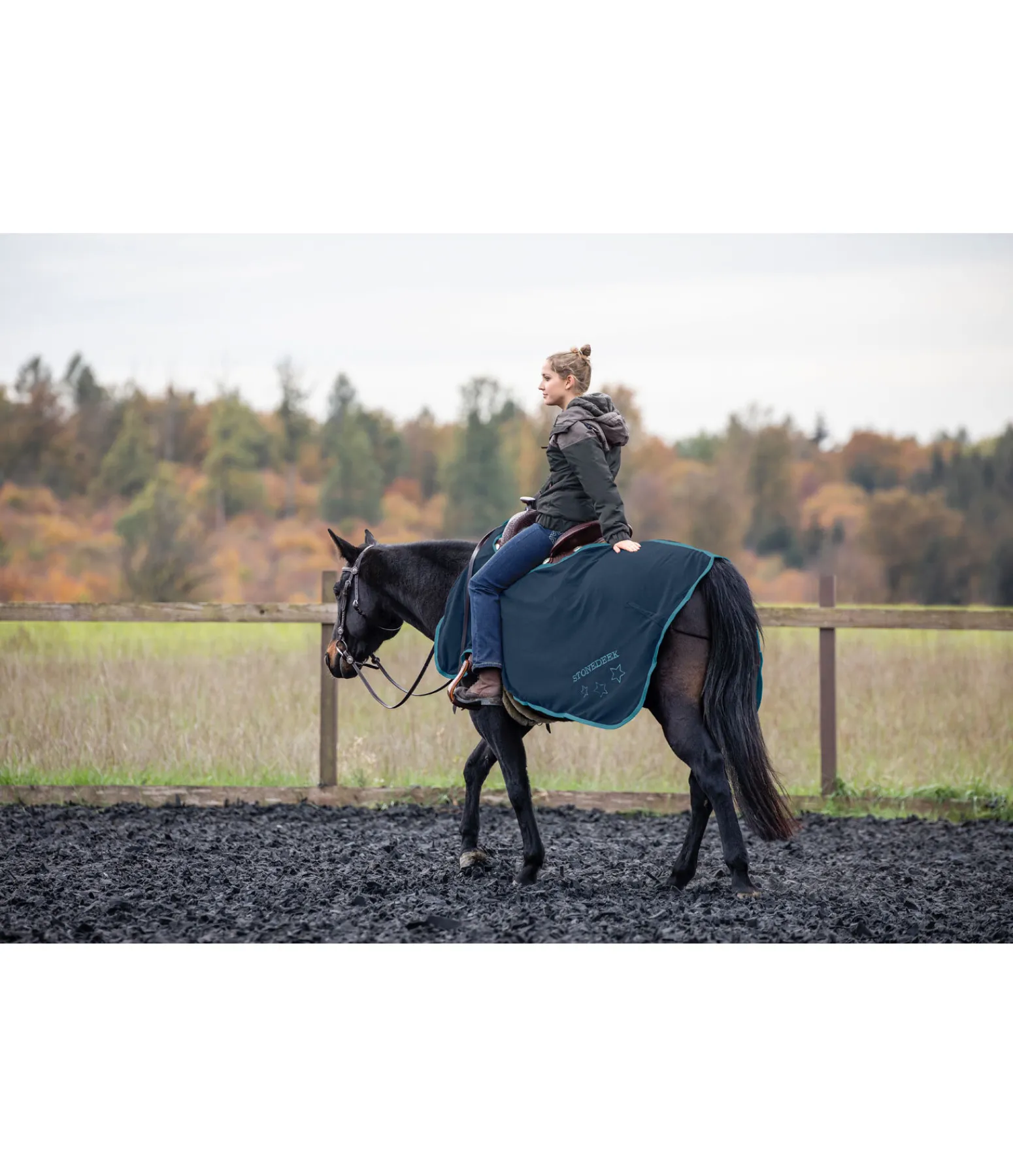Couvre-reins basique pour selles western. Matière polaire douce, technique et chaude ornée d’une jolie broderie. Fermeture simple par patte auto-agrippante. 100 % polyester