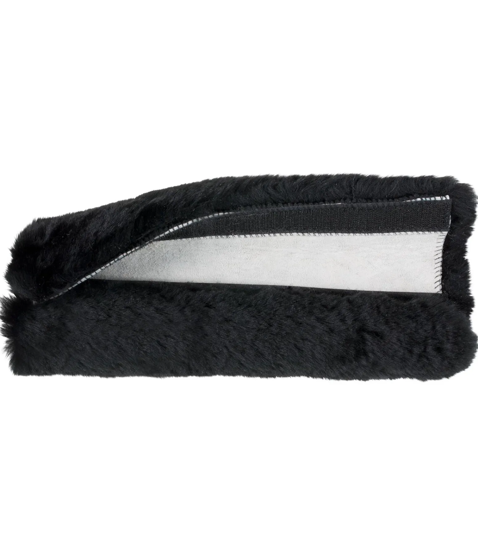 Fourreau en fourrure d’agneau avec bande auto-agrippante qui permet d’éviter les irritations et les points de pression dans la nuque et sur le chanfrein. 100 % fourrure d’agneau mérinos. Lavable à 30 degrés avec le programme de lavage spécifique pour la laine. Veuillez utiliser uniquement une lessive spéciale pour fourrure d’agneau. P (Poney) : 21 cm F (Full) : 25 cm.