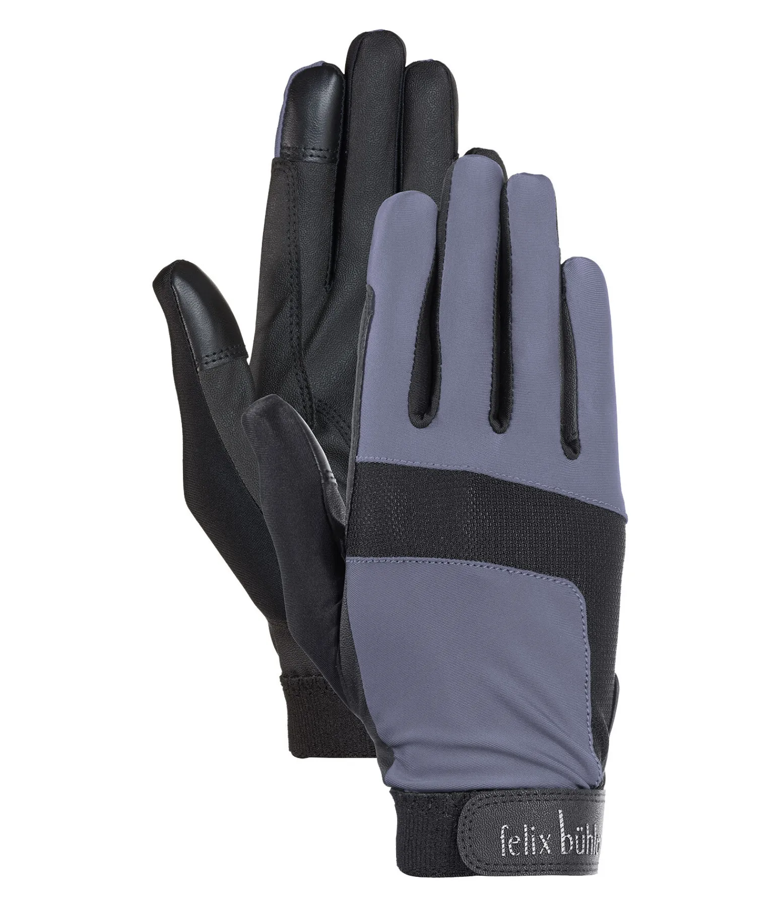Gants d’équitation d’été extensibles. Extra légers. Insert en Mesh sur le dessus de main. Fermeture par patte auto-agrippante avec logo Felix Bühler. Matière antidérapante en cuir synthétique sur la paume pour un bon maintien des rênes en main. Gants compatibles avec les écrans tactiles. Dessus de main : 100 % nylon, paume : 60 % polyester, 40 % polyuréthane.