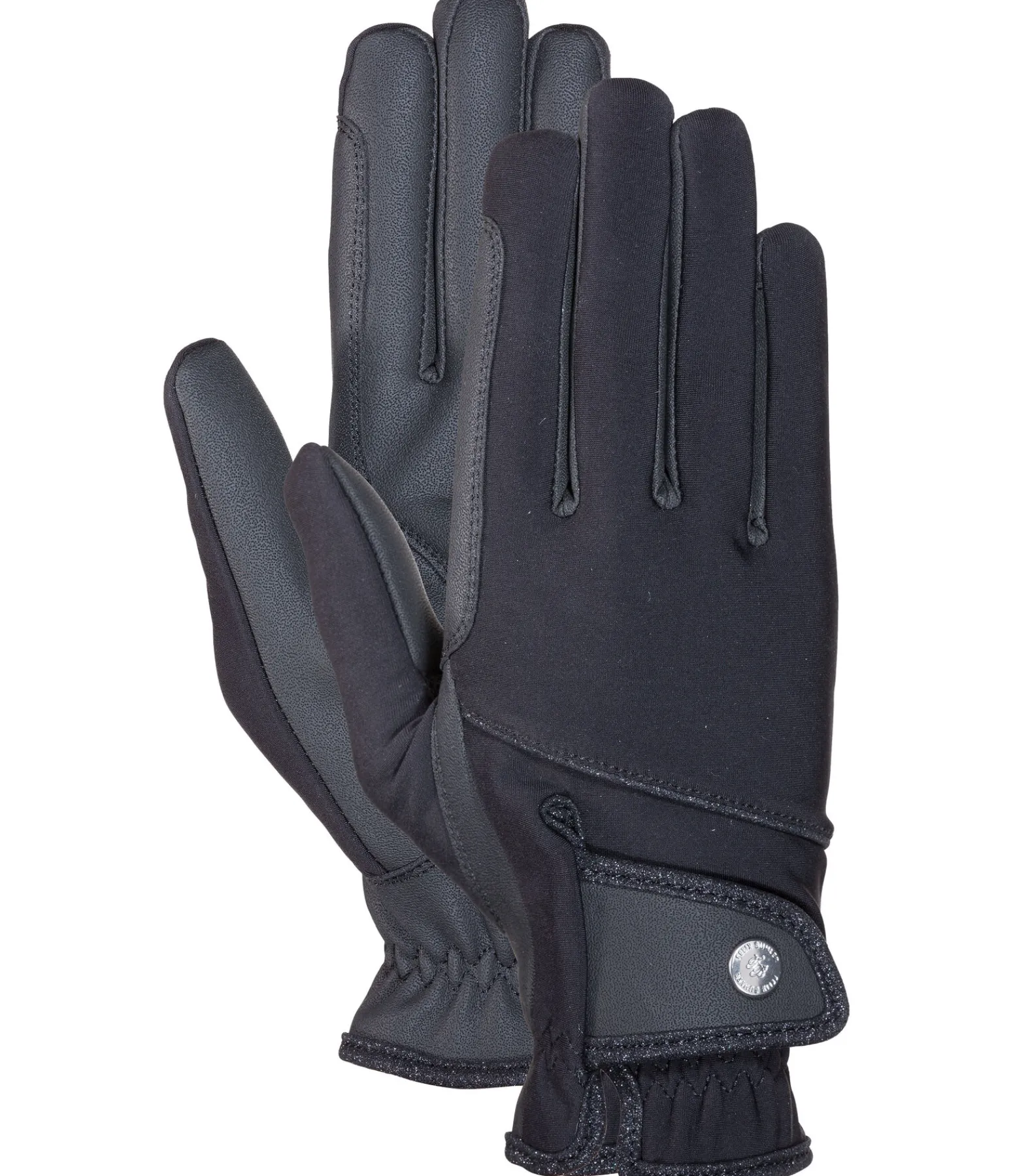 Gants d’équitation d’hiver chics en matière softshell extensible avec doublure chaude. Respirants, coupe-vent et déperlants. Dessus 85 % polyester, 15 % élasthanne. Paume 60 % polyester, 40 % polyuréthane.