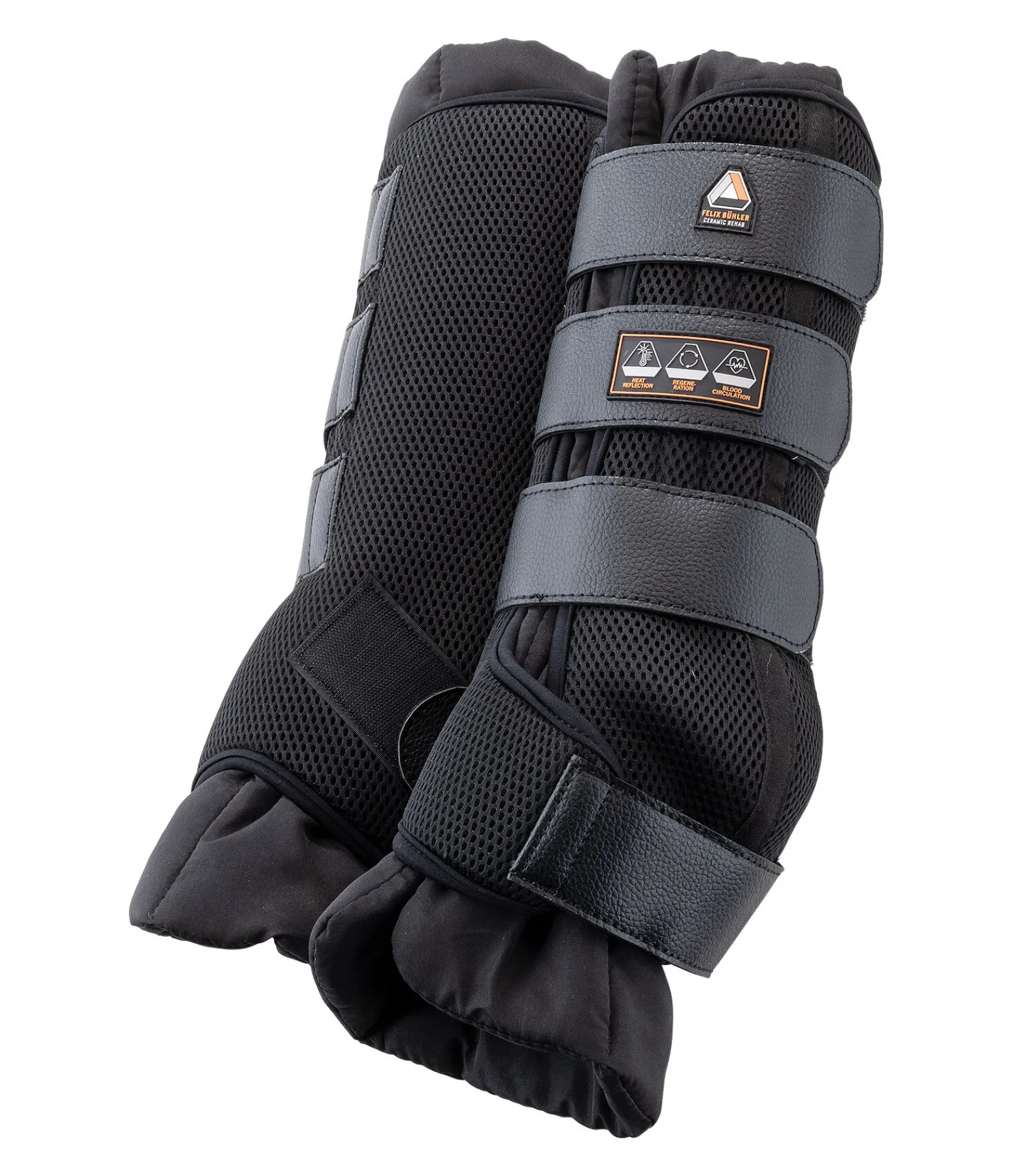 Guêtres d’écurie légères et respirantes pour l’été et la mi-saison. Avec sous-bandages extra longs, amovibles et lavables, avec fibres de céramique qui stimulent la circulation sanguine dans la jambe et peuvent avoir ainsi un effet bénéfique sur l’appareil locomoteur. Idéales en période de convalescence ou en cas de maladies chroniques comme l’arthrose. Matière extérieure en tissu respirant rembourré permettant une circulation continue de l’air. Ajustement optimal grâce aux 4 pattes auto-agrippantes. 100 % polyester.