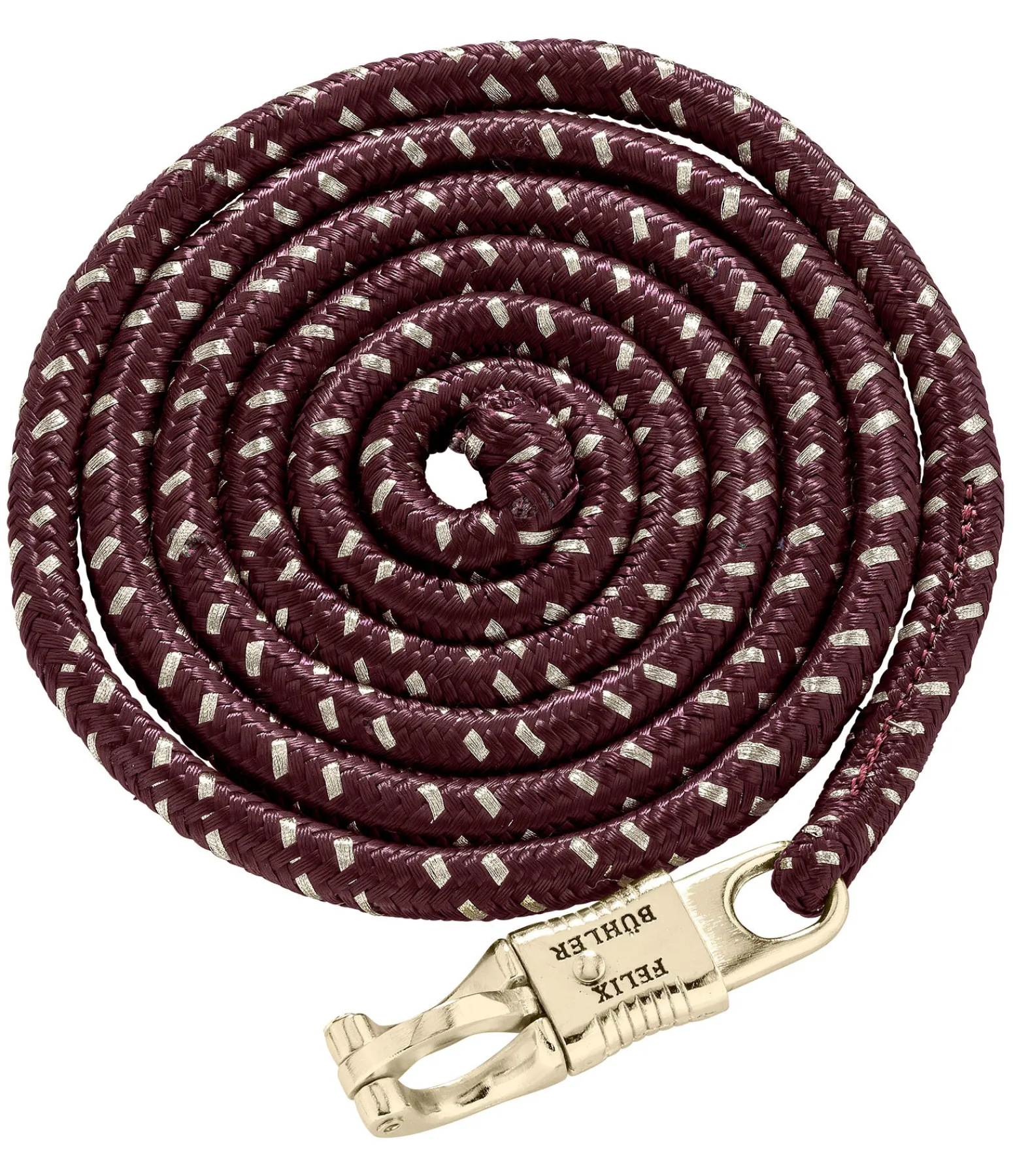 Longe d’attache ronde avec tressage serré, fil scintillant et mousqueton anti-panique de couleur assortie. Parfaitement assortie au licol 310047. 2 m. 100 % polyester.