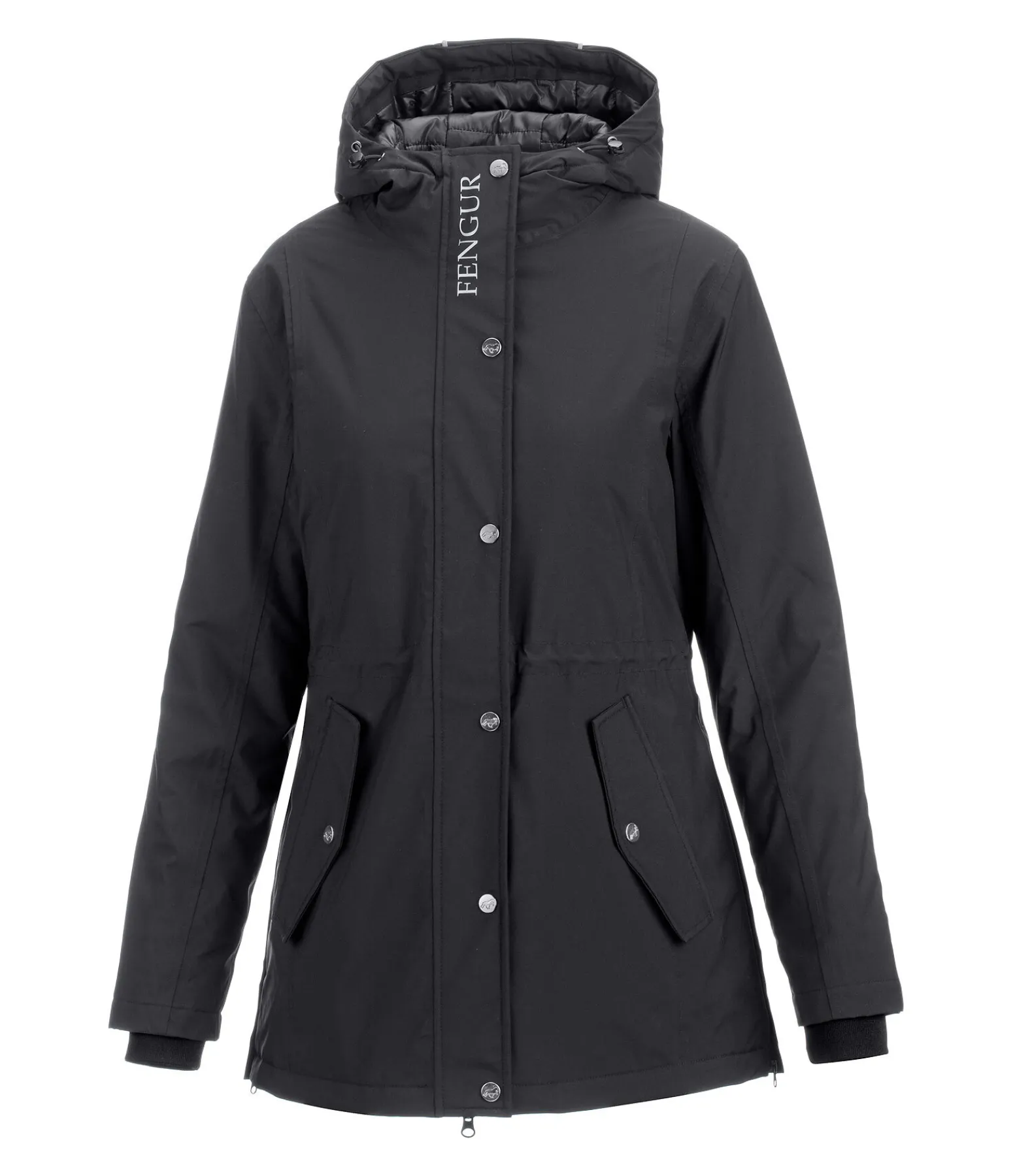 Manteau d’équitation technique imperméable et coupe-vent (10.000 mm) avec garnissage chaud en imitation duvet. Capuche pouvant être fixée dans le dos. Détails réfléchissants sur le col et la capuche. Taille élastiquée réglable. Capuche ajustable. Deux fentes cavalières à l’arrière avec fermeture à glissière. Fermeture à glissière double sens dissimulée à l’avant et poches latérales à rabat. 100 % polyester.