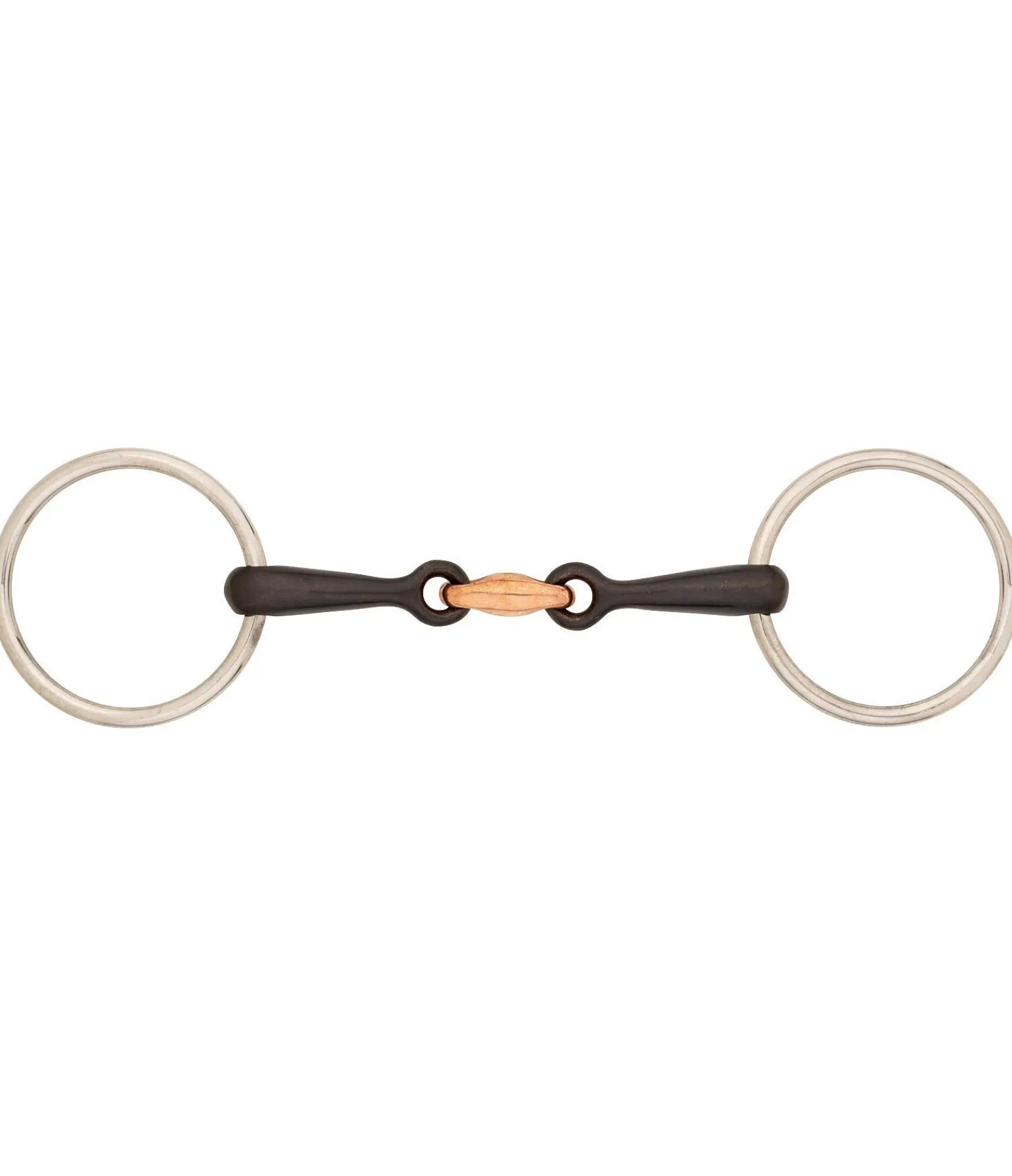 Pour chevaux jeunes ou sensibles. Acier Sweet-Iron, avec passage de langue en cuivre favorisant le mâchouillage. Anneaux en acier inox. Épaisseur 14 mm.