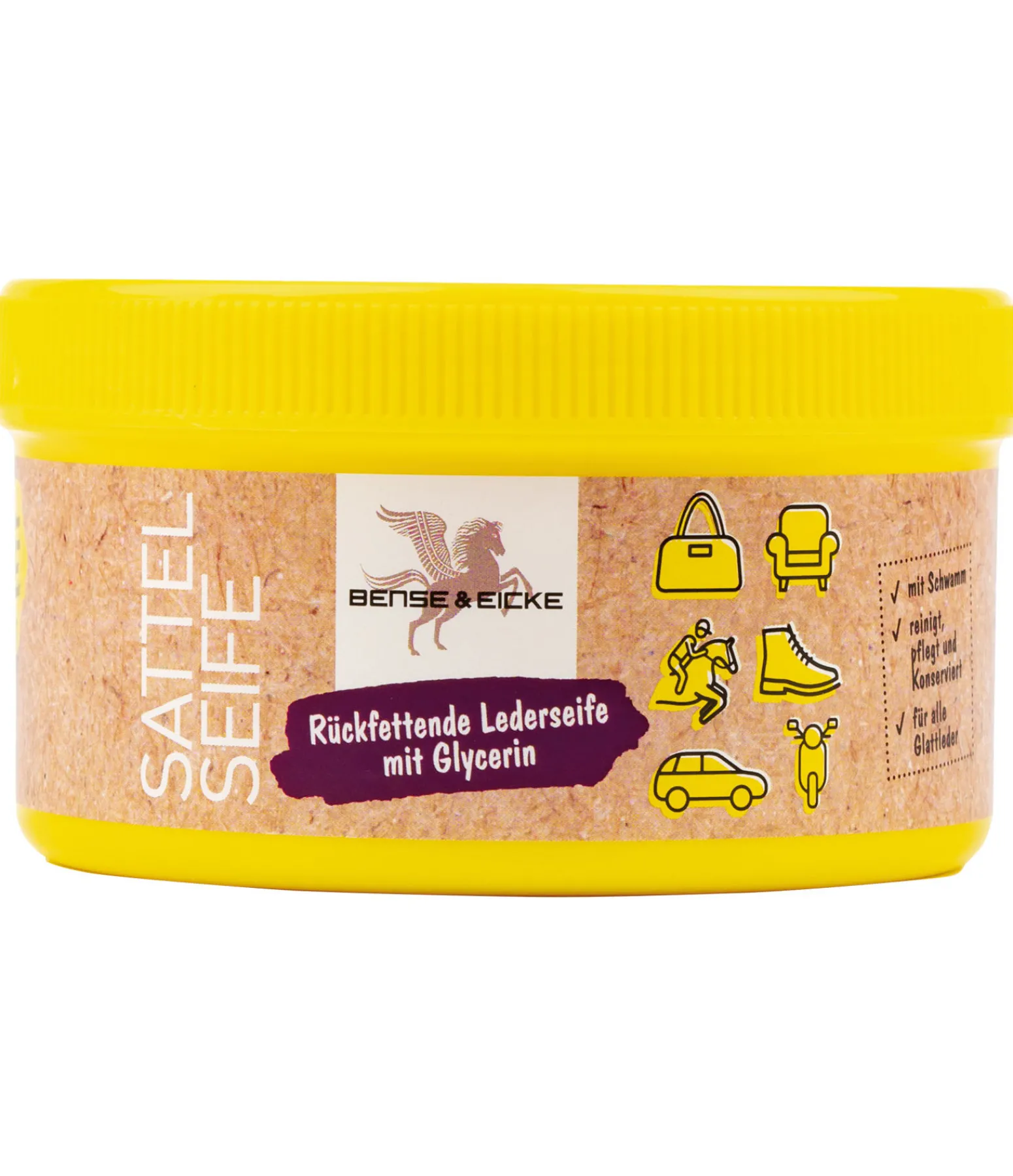 Utilisation : appliquer le savon sur le cuir à l’aide de l’éponge.