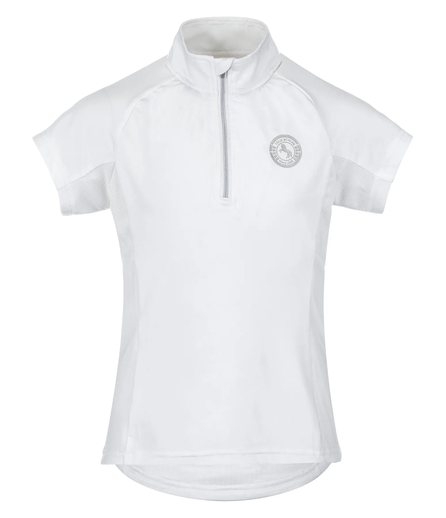 T-shirt de concours extensible et doux. Inserts latéraux en mesh pour une respirabilité optimale. Manches raglan. Col officier zippé avec protège-menton. Logo Felix Bühler sur la poitrine. Séchage rapide. 88 % polyester, 12 % élasthanne.