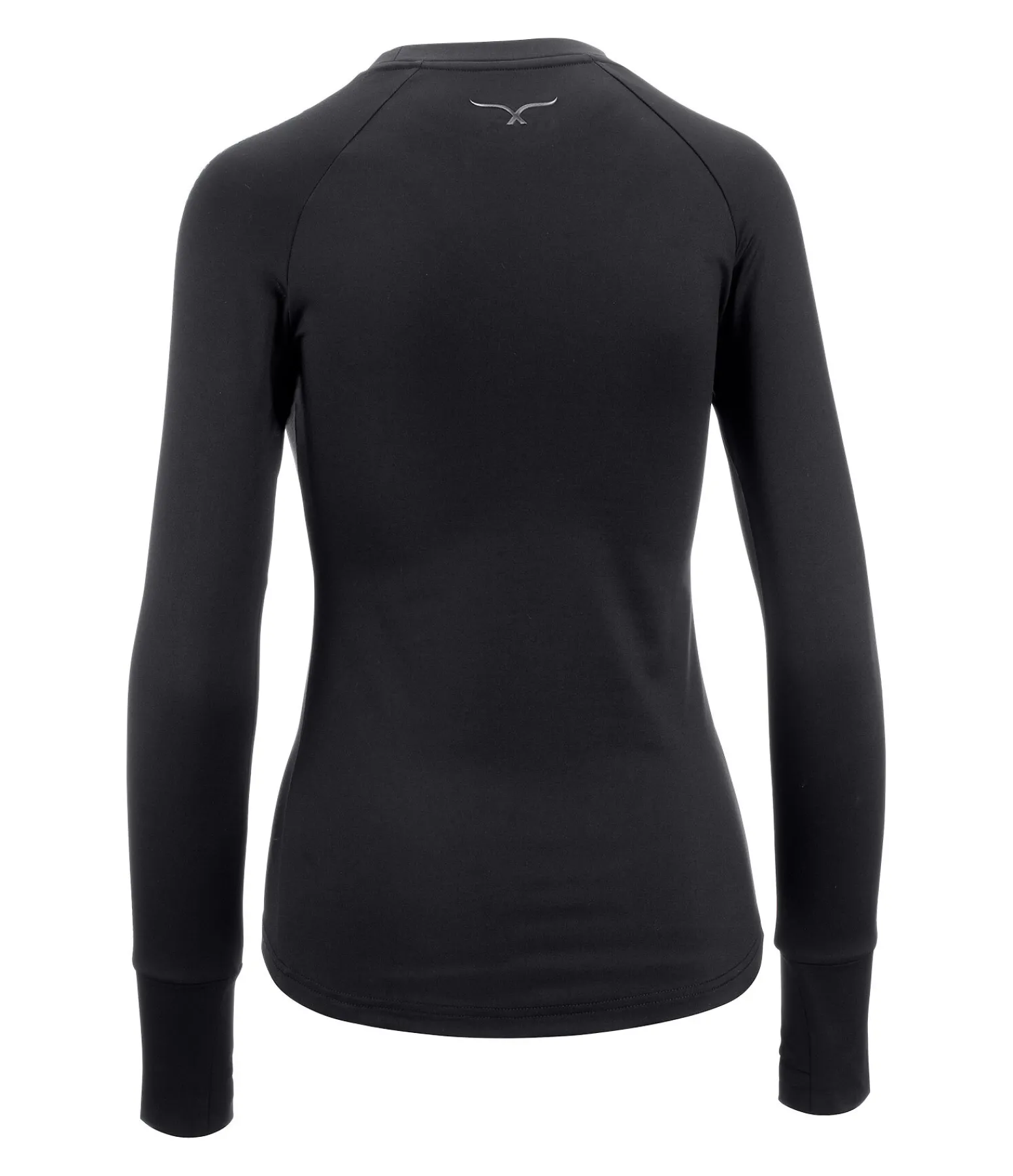 T-shirt technique chaud et respirant à col rond. Manches longues avec passe-pouce. Imprimé logo discret dans le dos et sur les manches. 92 % polyester, 8 % élasthanne.