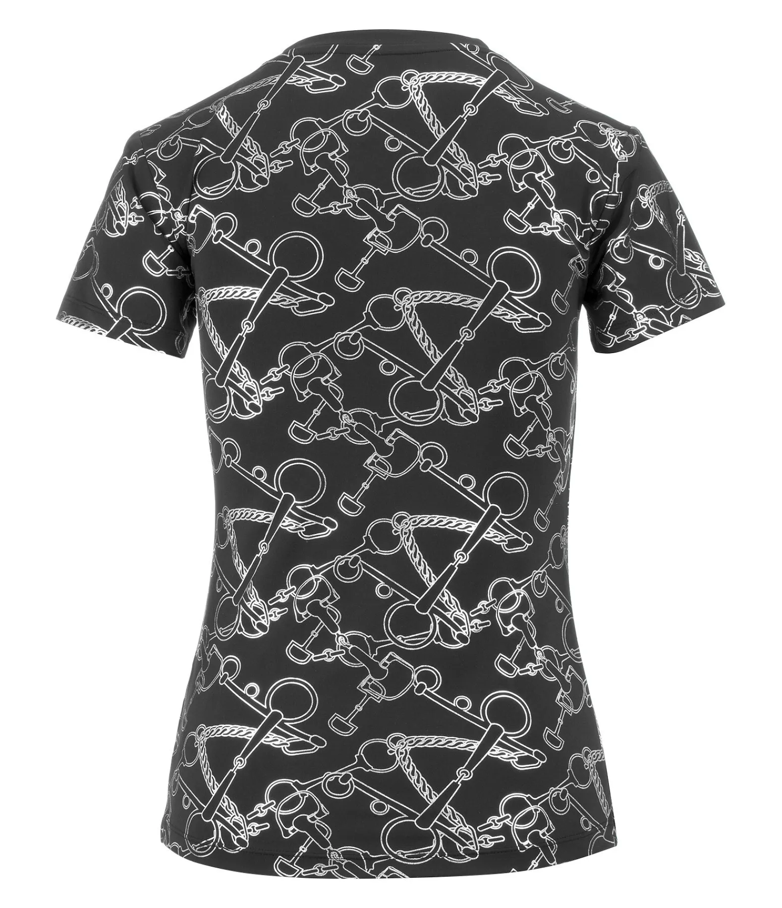 Élégant T-shirt technique à manches courtes. Col en V. Imprimé all-over couleur métallisée. Respirant et à séchage rapide. 88 % polyester, 12 % élasthanne