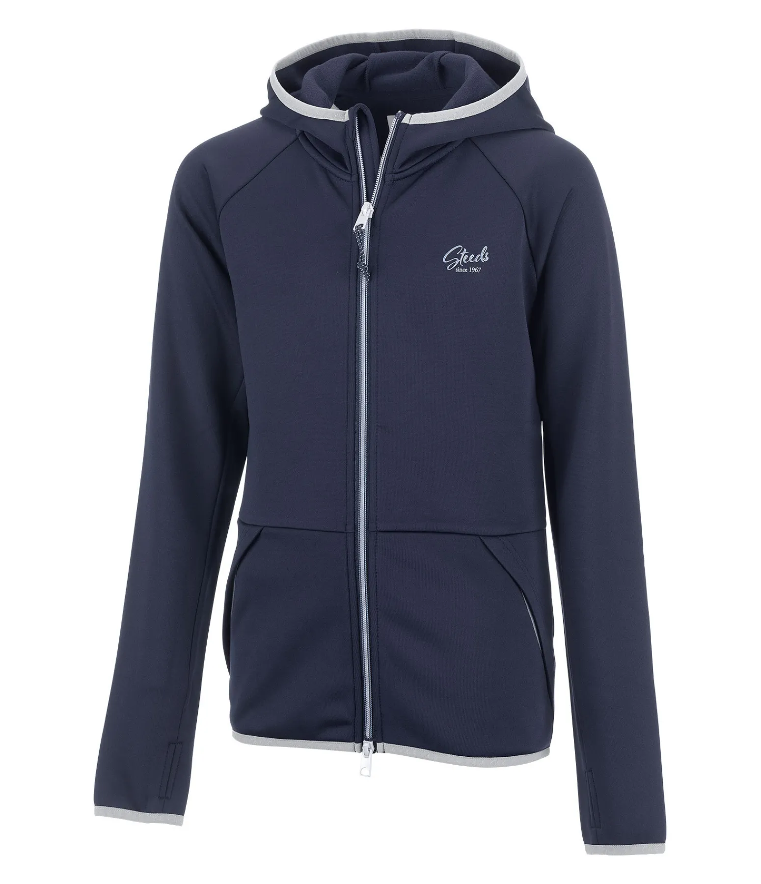 Veste Power-Stretch légère. Capuche haute. Matière respirante à séchage rapide. Intérieur doux. Fermeture à glissière bidirectionnelle avec protège-menton. Deux poches latérales. Passepoil élastiqué avec signature STEEDS sur le bas des manches, la capuche et l’ourlet. Passe-pouce. Logo STEEDS sur la poitrine. 94 % polyester, 6 % élasthanne.