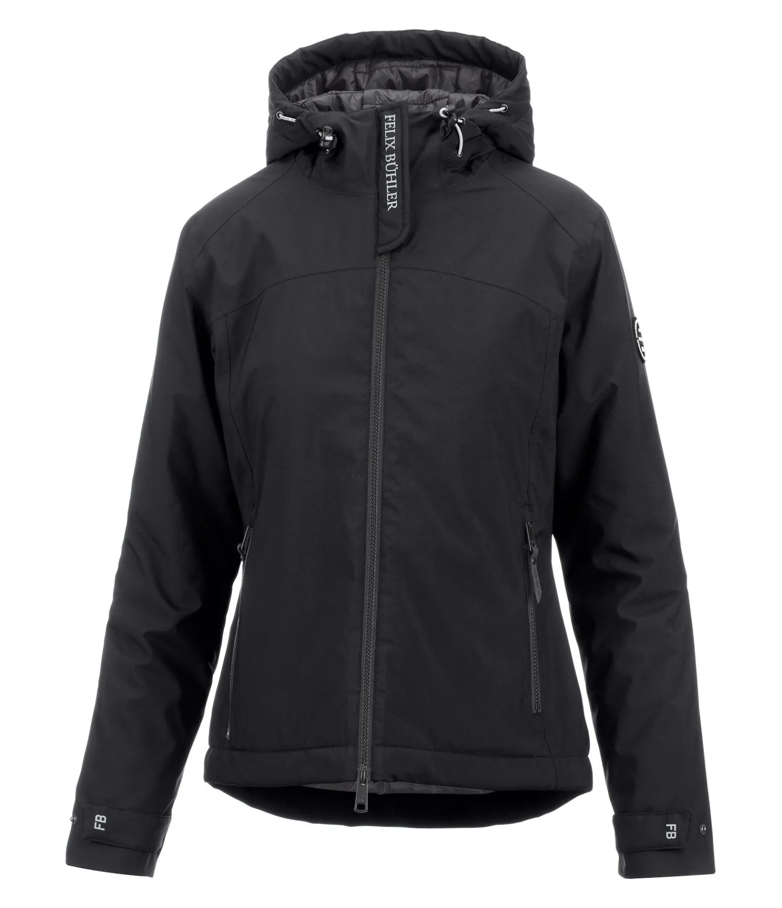 Courte veste d’équitation technique avec garnissage chaud en imitation duvet. Imperméable (10.000 mm), coupe-vent et respirante. 2 poches zippées devant, 1 poche intérieure zippée, fermeture à glissière double sens avec sous-patte, taille et bas des manches réglables, col haut avec capuche rembourrée réglable et pouvant être fixée dans le dos. Badge Felix Bühler sur la manche et imprimé réfléchissant Felix Bühler sur le col. 100 % polyester.