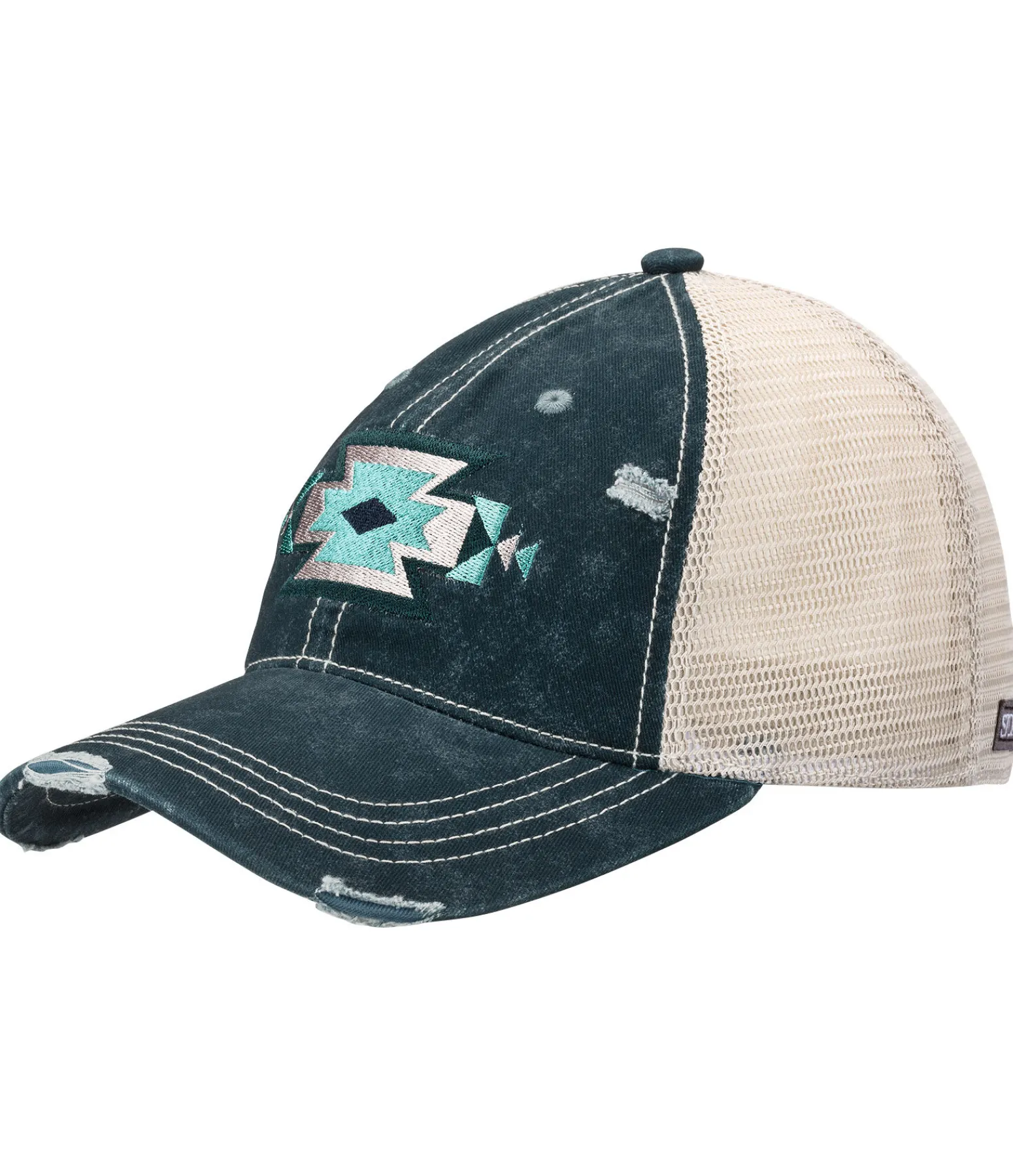 Casquette à l’aspect usé. Motif aztèque brodé. Empiècement en mesh respirant. 70 % polyester, 30 % coton.