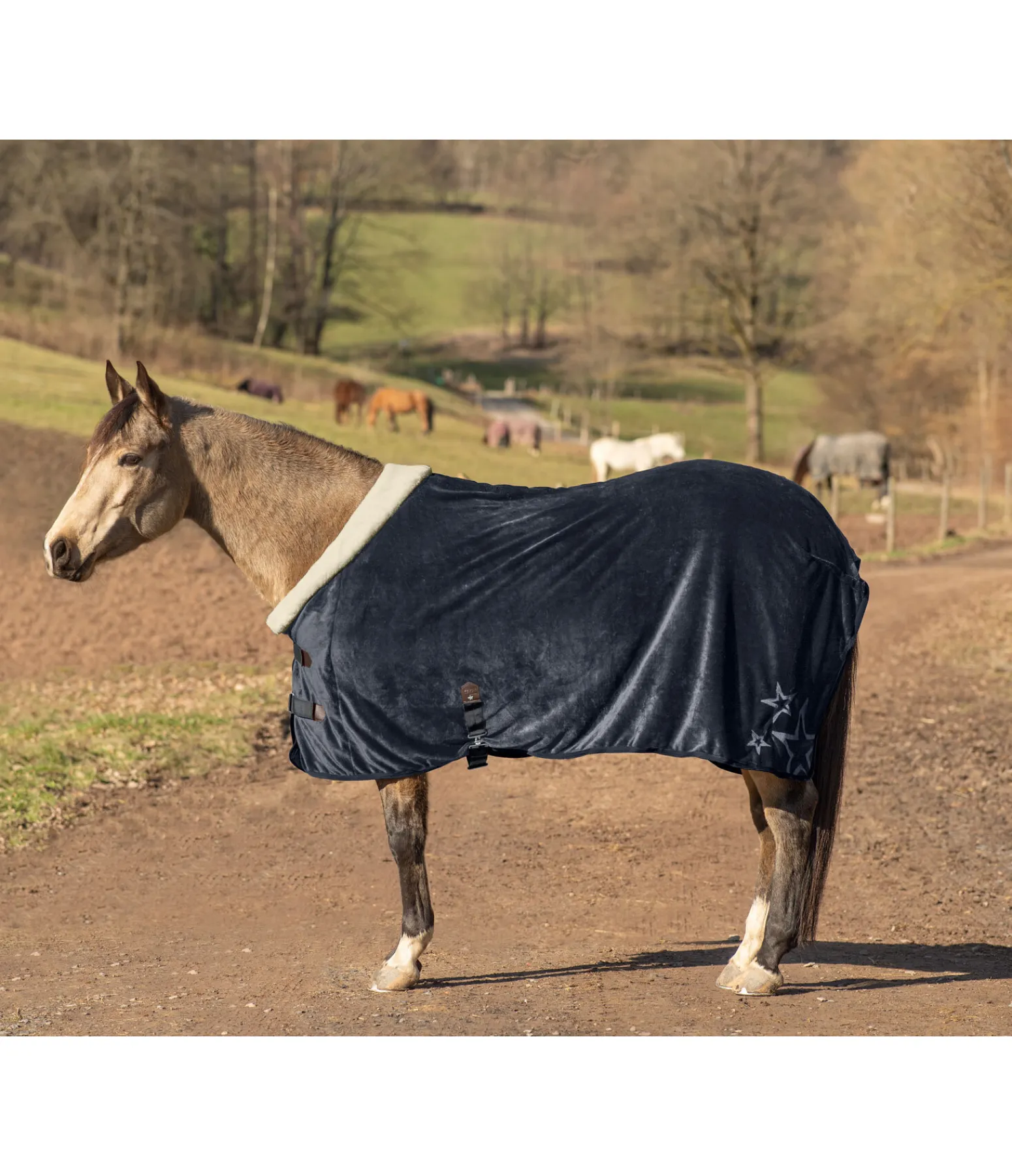 Chemise polaire douce. Matière respirante. Large encolure en polaire Teddy. Fermeture par patte auto-agrippante au niveau du poitrail . Sangle ventrale. Broderie étoilée sur le flanc. 100 % polyester.