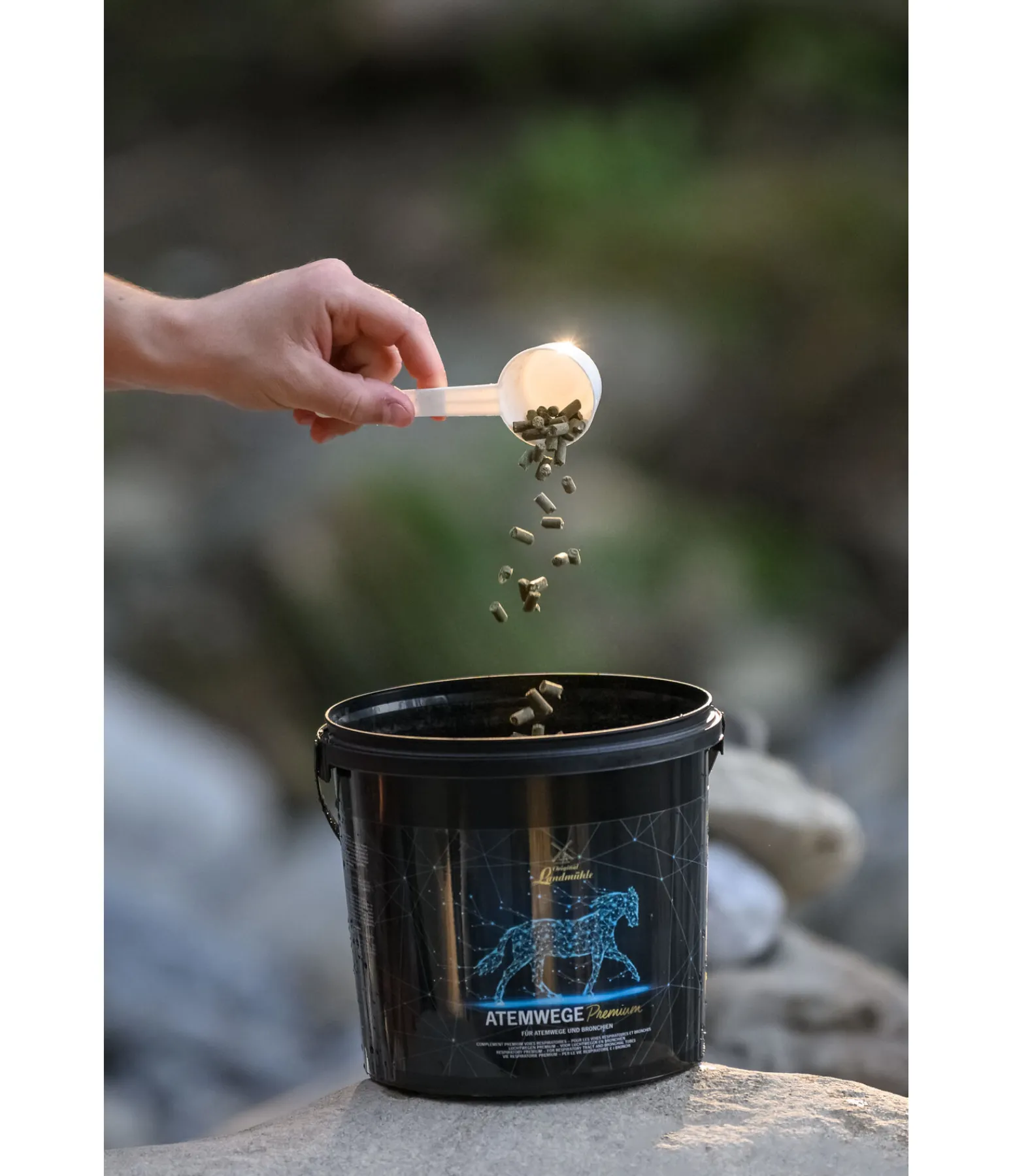 Recommandations de dosage : cheval (600 kg de poids vif) 30 g par jour. 1 mesurette (25 ml) contient environ 20 g