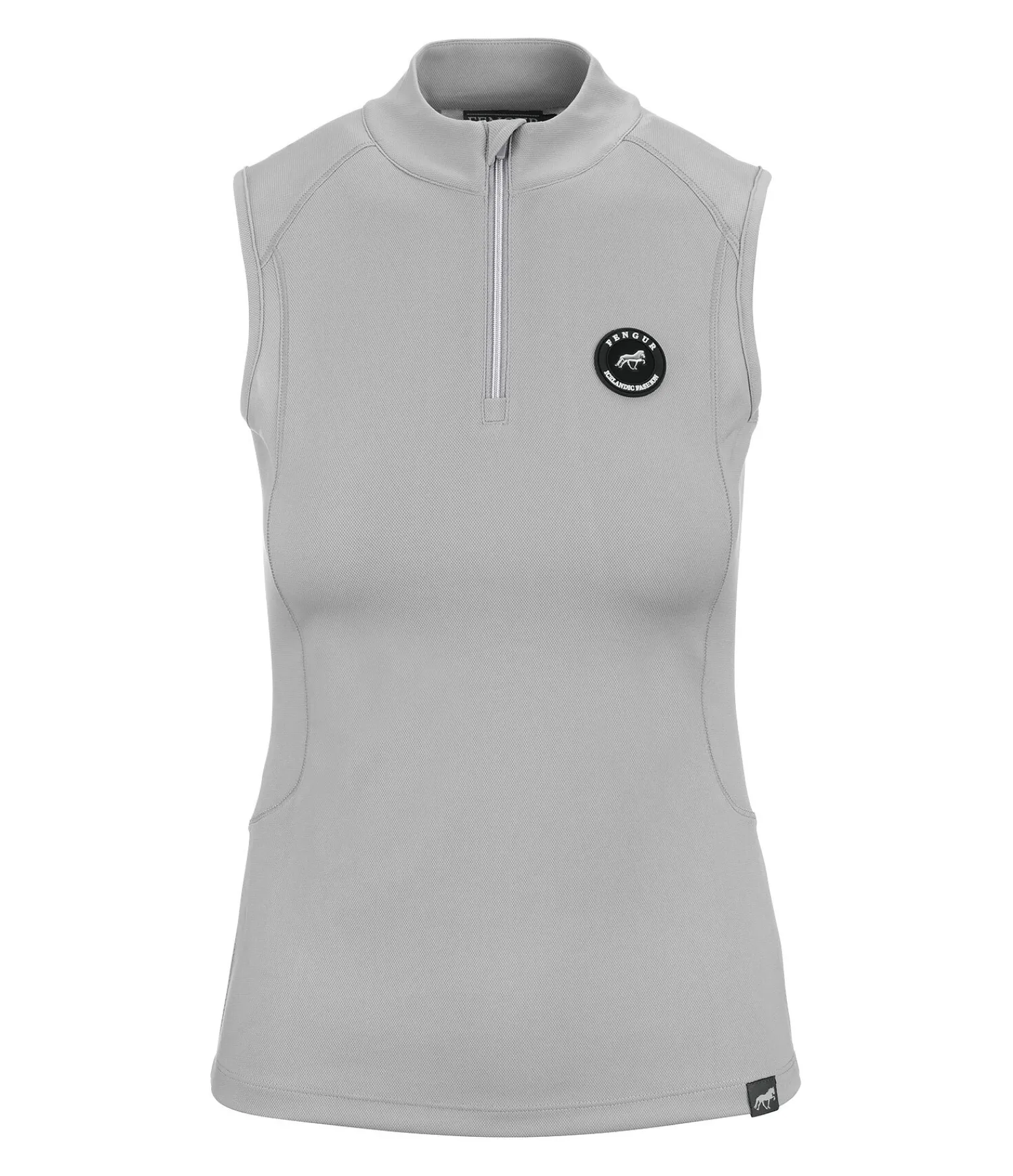 Débardeur technique sans manches en mesh respirant. Petit col montant avec fermeture à glissière et protège-menton. Badge logo FENGUR sur la poitrine. 100 % polyester.