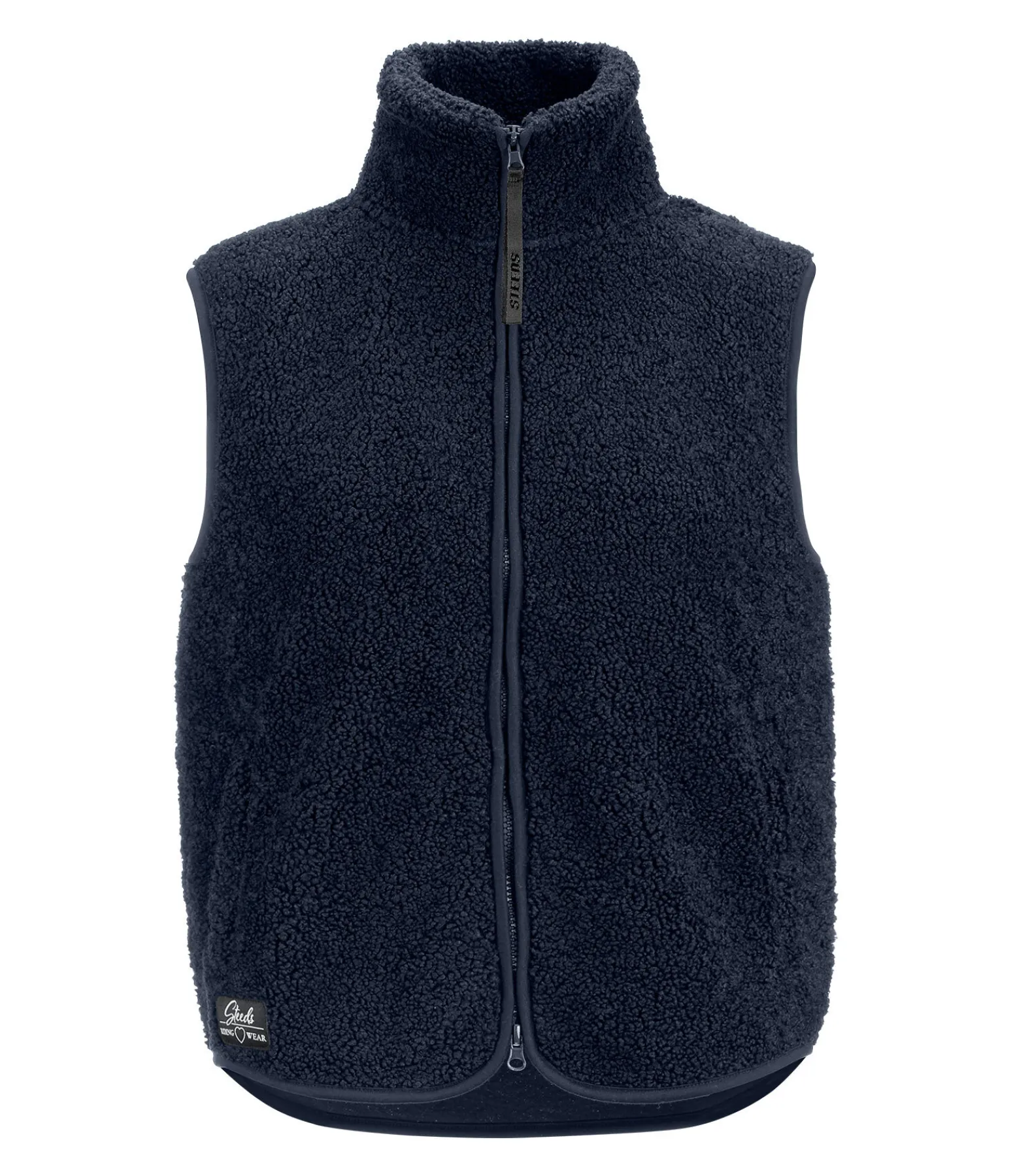 Gilet en polaire Teddy douce et extensible. Col montant. Coupe plus longue à l’arrière. Fermeture à glissière double sens avec sous-patte. Deux poches zippées latérales dissimulées. Étiquette STEEDS à la taille. 100 % polyester.