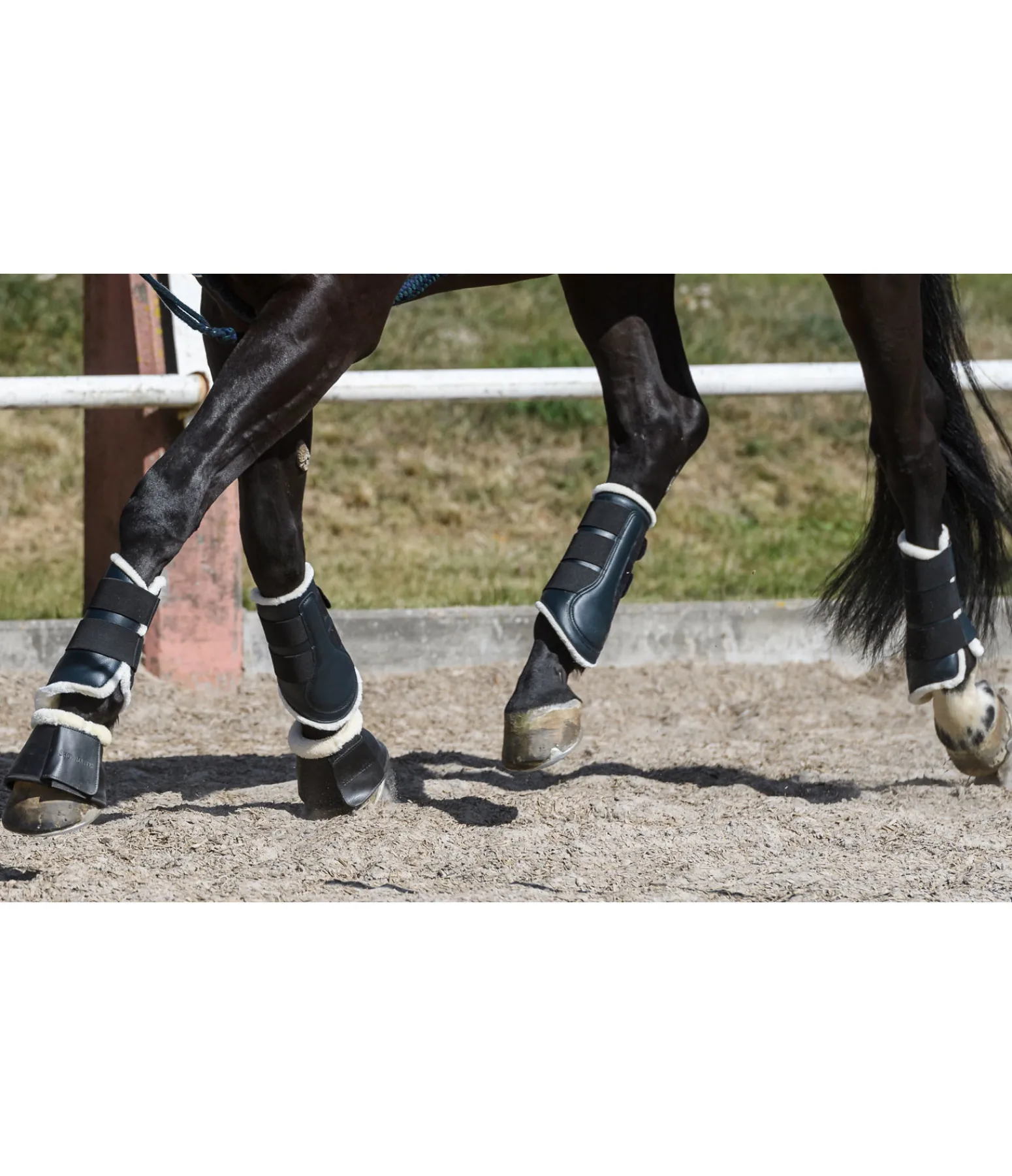 Guêtres de dressage en matière synthétique résistante. Doublure en polaire Teddy douce. Avec deux bandes auto-agrippantes élastiquées pour un ajustement parfait et un maintien sûr. Vendues par paire.