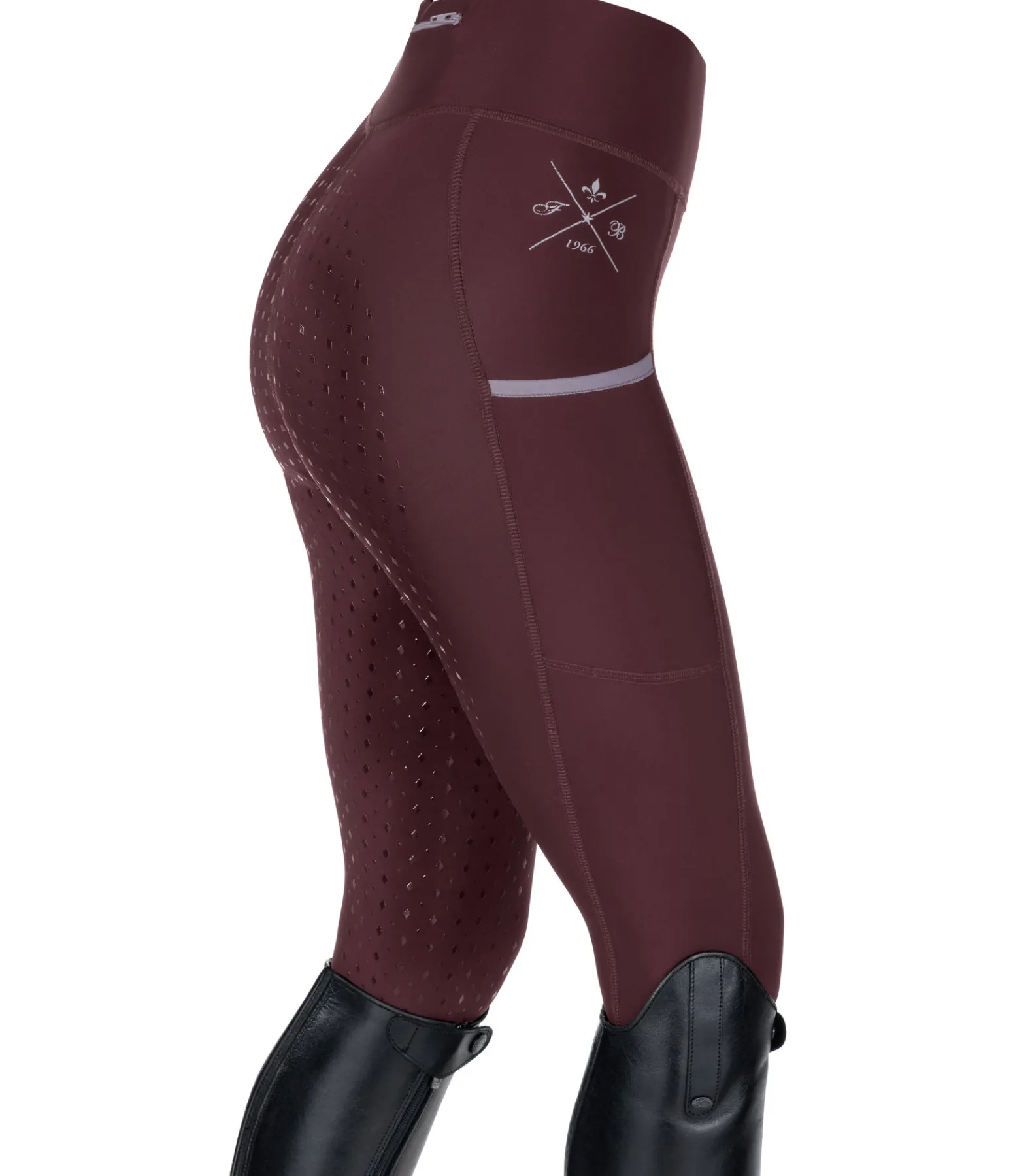 Legging d’équitation confortable. Fond intégral grip en silicone. Matière stretch extensible dans 4 directions. Ceinture extra large. Poche zippée arrière et poche latérale pour téléphone portable. Aucune couture au niveau des genoux. Bas de jambe extensible. Imprimé siliconé Felix Bühler. 90 % nylon, 10 % élasthanne.