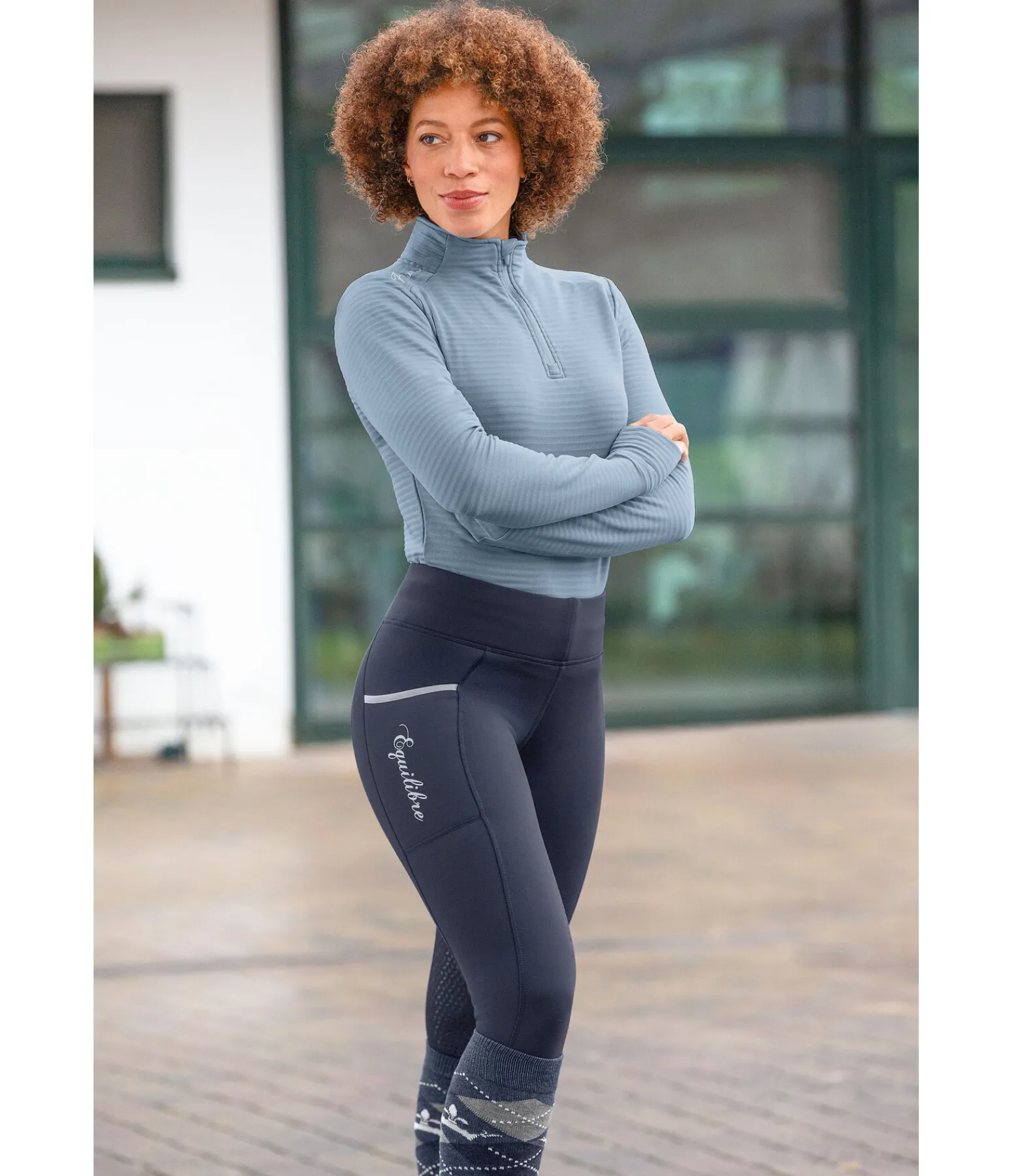 Legging d’équitation chaud pour les froides journées d’hiver ! Fond intégral grip en silicone. Matière stretch douce et souple, extensible dans 4 directions, pour un ajustement parfait. Intérieur confortable. Une poche latérale pour téléphone portable. Ceinture extra large avec poche zippée. 60 % polyester, 30 % polyamide, 10% élasthanne.