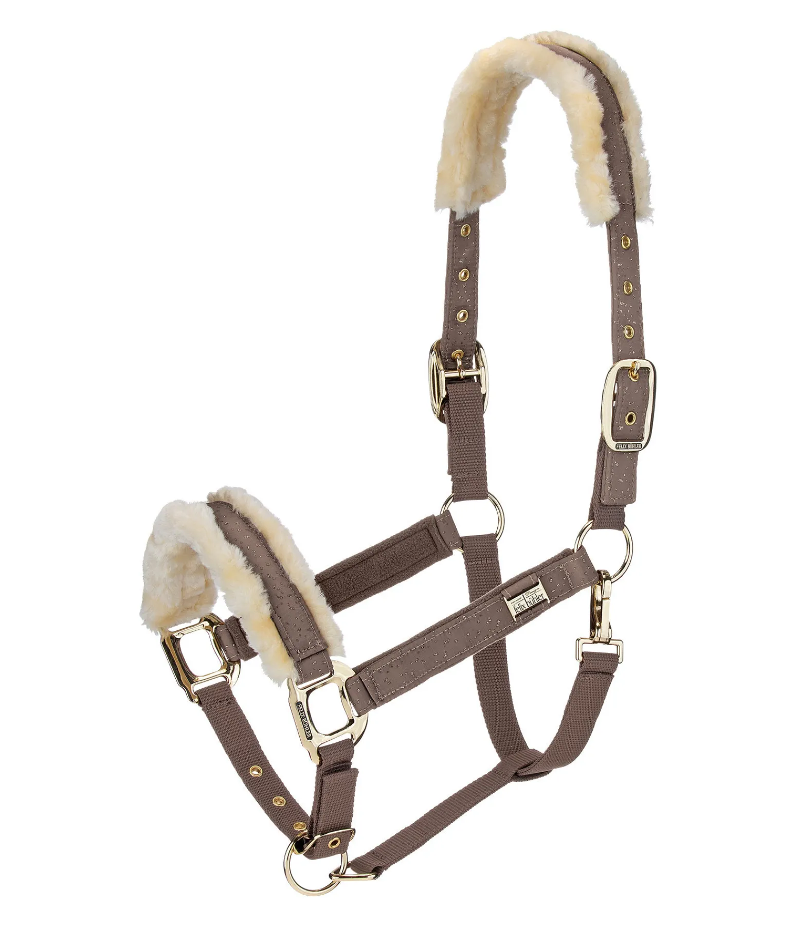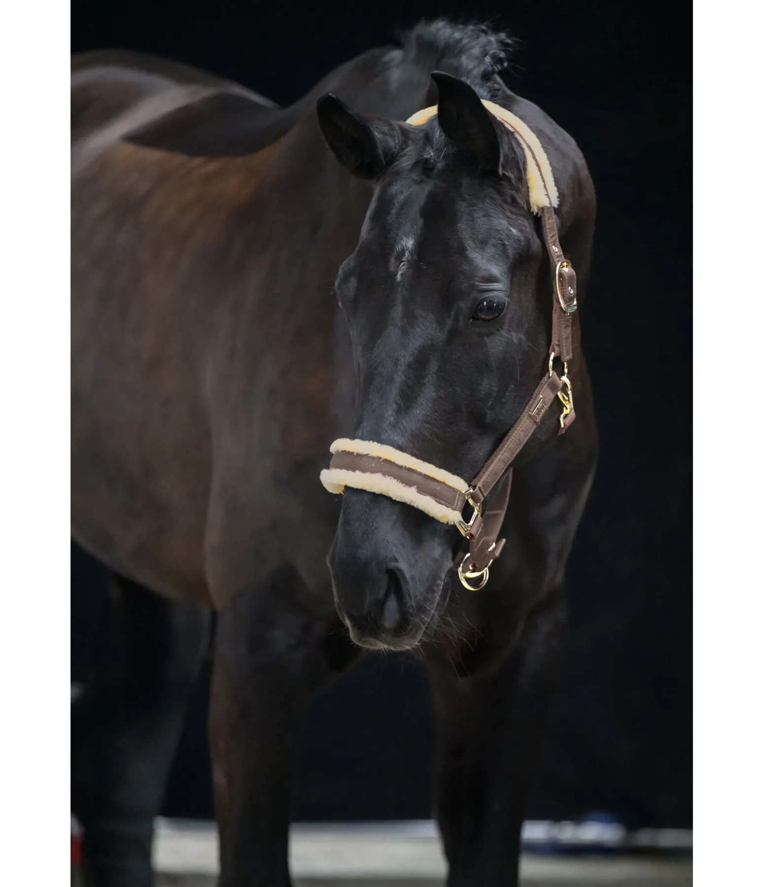 Magnifique licol avec revêtement satiné orné de fragments scintillants et bouclerie de couleur assortie. Têtière et muserolle avec doublure douce en polaire Teddy. Petite plaque élégante avec logo gravé sur chaque montant. Têtière doublement réglable et muserolle réglable. Licol 100 % polypropylène, doublure et revêtement 100 % polyester.