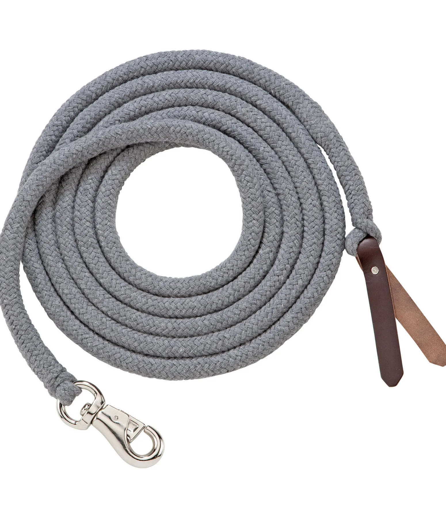 Très résistante grâce à l’épais coeur en polyester. Gaine en coton naturel anti-dérapant. Grâce au poids du bullsnap en laiton, qui peut s’ouvrir vers l’extérieur, les indications transmises au cheval sont encore plus claires. Avec embout en cuir. Disponible en 4 m.