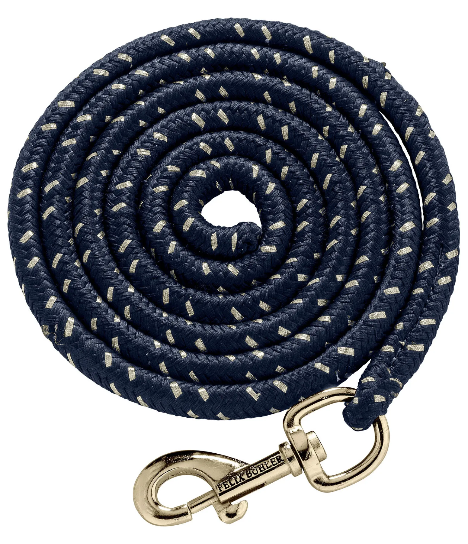Longe ronde avec tressage serré, fil scintillant et mousqueton de couleur assortie. Parfaitement assortie au licol 310047. 2 m. 100 % polyester.