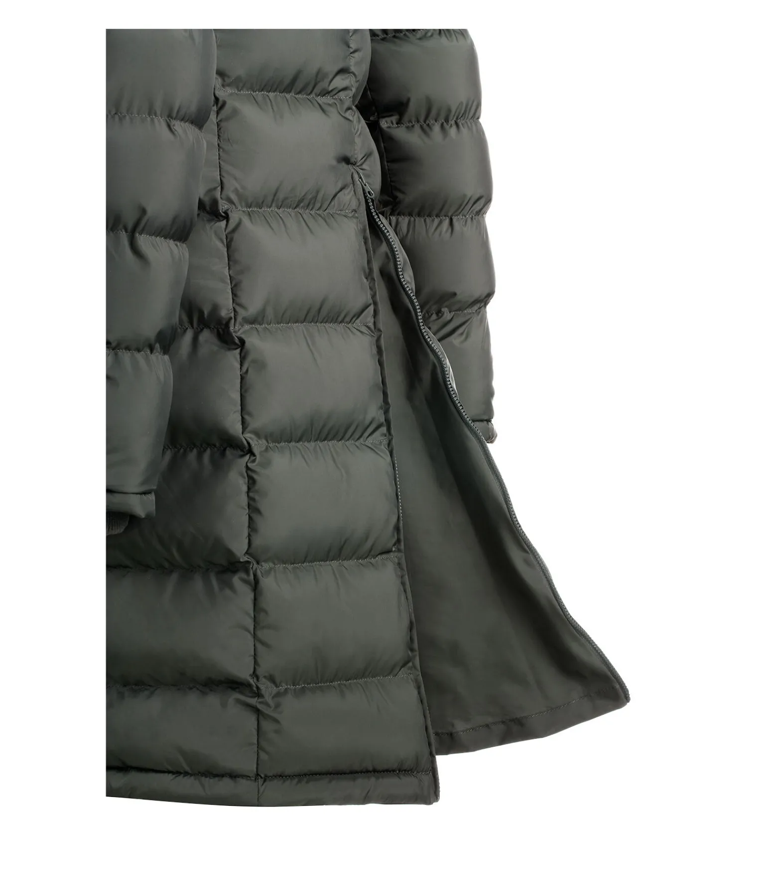 Manteau tendance long et extra chaud. Garnissage doux imitation duvet. Col montant. Capuche réglable avec système d’attache dans le dos. Fermeture à glissière double sens dissimulée. Deux poches latérales zippées dissimulées et doublées de polaire douce. Finition bord-côte en bas des manches. Longue fente cavalière zippée à l’arrière. Broderie Felix Bühler sur la manche. 100 % polyester.