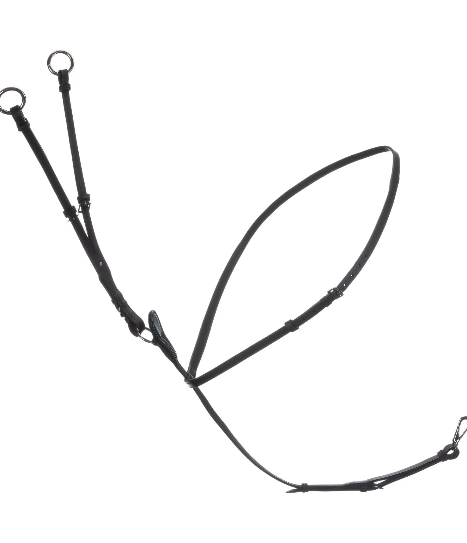 Martingale en cuir gras véritable avec doublure en cuir entre les antérieurs et au niveau du poitrail pour éviter les pressions et irritations dues aux frottements. Le point fort de cette martingale : les anneaux de martingale ouvrables permettent de passer facilement les rênes dans les anneaux. Il n’est donc plus nécessaire d’ouvrir les rênes pour y fixer la martingale. Collier réglable, fourche de martingale réglable et amovible. Fixation rapide et facile à la sangle grâce à un mousqueton (amovible). Cuir gras véritable. Bouclerie argentée.