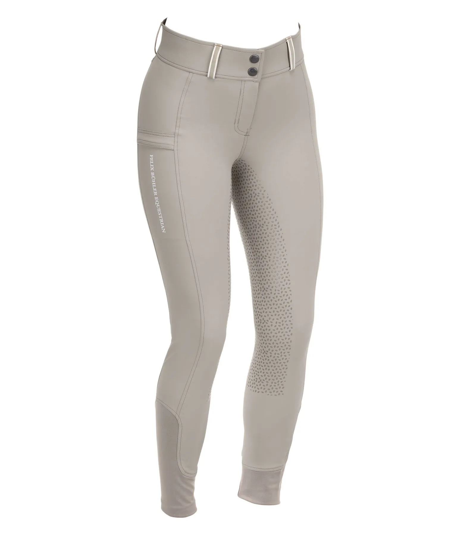 Pantalon d’équitation technique avec fond intégral grip en silicone. Matière déperlante, respirante à séchage rapide. Le tissu stretch offre un super confort et une assise parfaite. 1 poche arrière zippée, 1 poche pour téléphone portable sur la jambe. Ceinture élastiquée avec passants rayés de couleur contrastante. Aucune couture au niveau des genoux. Bas de jambe extensible en stretch. 89 % nylon,11 % élasthanne.