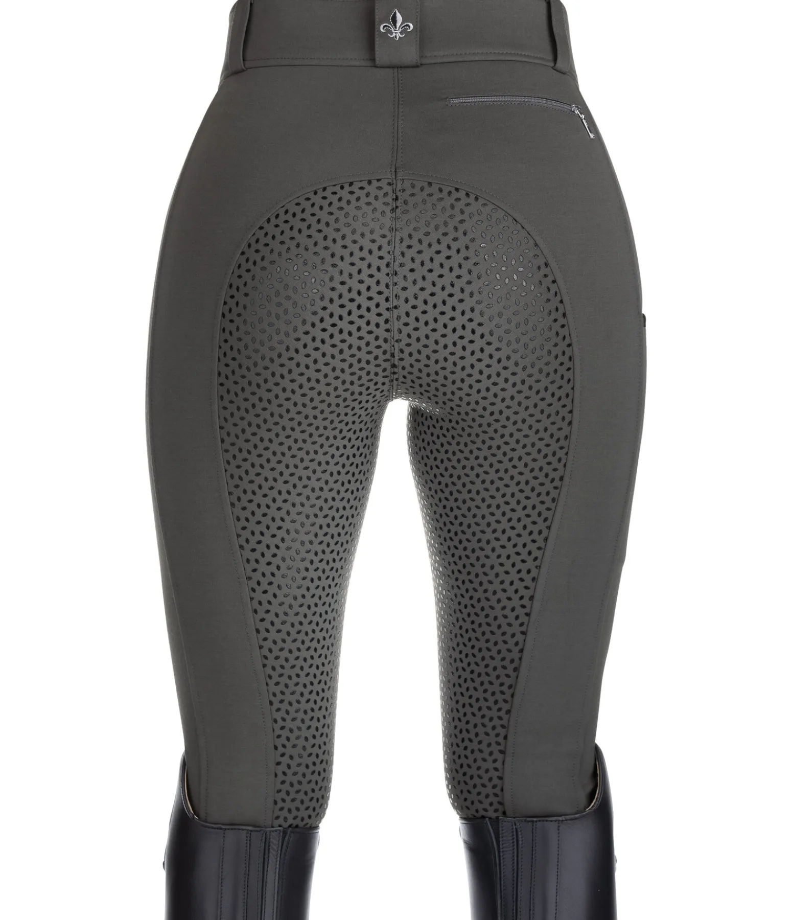 Pantalon d’équitation chaud. Fond intégral grip en silicone. Intérieur molletonné. Matière souple pour un ajustement parfait. Ceinture extra large. Une poche latérale pour téléphone portable et une poche zippée arrière. Aucune couture au niveau des genoux. Bas de jambe extensible sans patte auto-agrippante. 65 % viscose, 30 % polyamide, 5 % élasthanne.