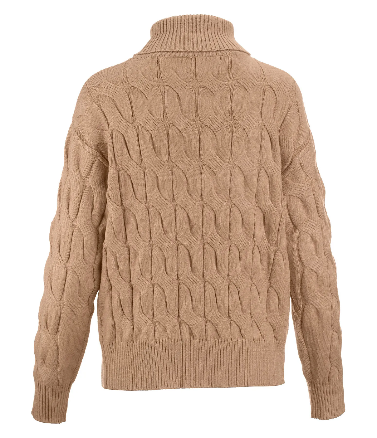 Pull-over à col roulé extrêmement doux et chaud en tricot torsadé. Bordure côtelée au col, en bas des manches et à la taille. 54 % polyacrylique, 28 % polyester, 18 % nylon.